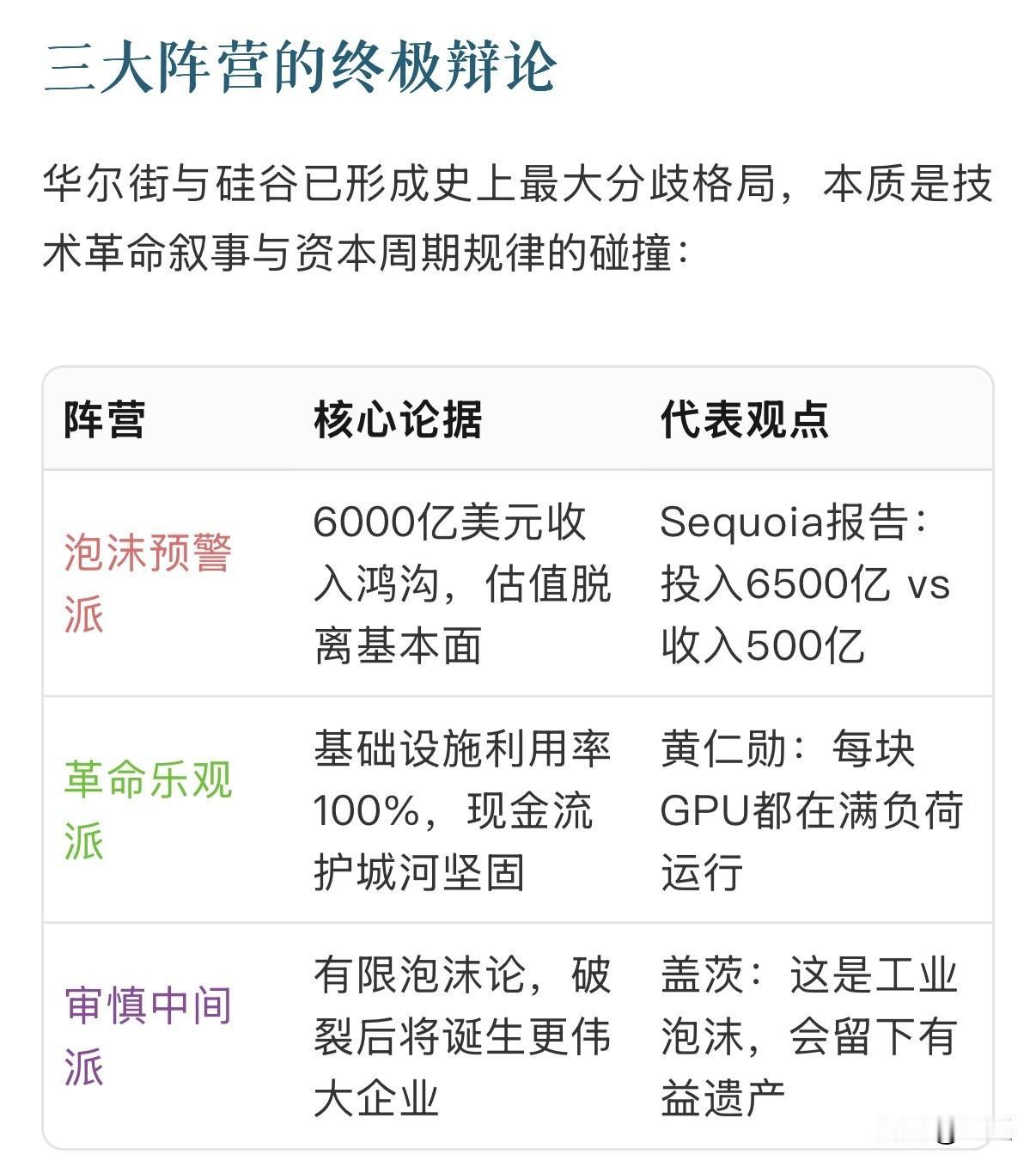 正如吴恩达所言:"从短期看,市场是投票机;从长期看,市场是称重机。" 泡沫与否的关键,在于AI能否在资本耐心耗尽前,兑现其改变世界的承诺。 当前AI投资确实存在结构性泡沫 ,但属于"有技术基础的泡沫"。资本支出远超收入(6:1),估值局部过热,但不同于2000年互联网泡沫,本轮由成熟巨头主导且有真实现金流支撑。 泡沫的量化证据, 关键数据: 投资规模:全球AI投资达历史级水平,四大科技巨头2025年资本支出预计3200亿美元 收入缺口:数据中心年支出3700-4000亿美元,相关收入仅600亿美元,支出是收入的6倍 估值分化:头部公司PE约28倍合理,但特斯拉PE达151倍,Palantir达200倍。