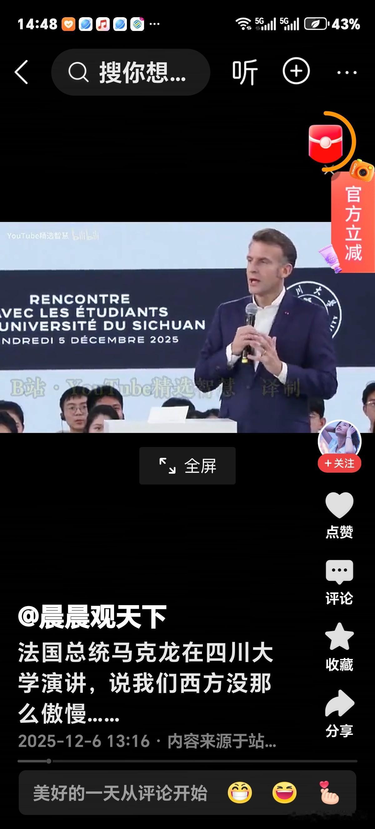 马克龙在四川大学演讲"我们西方没那么傲慢"!是真话吗?我认为是。至少自1953年以后西方谦虚点!而如今西方彻底恭敬了。 因傲慢者必须具备文武双全能耐,否则卑微!那么什么时候西方开始傲慢?非常简单是从八国联军掠走故宫文物,并火烧圆明园,西方人自信满满不谦卑了。 当时间跨入二十世纪,朝鲜半岛硝烟散尽后,西方人虚心了许多,毕竟十六国"联合军”,手握世界最先进武器装备,也无可奈何在《朝鲜停战协定》上签字! 到了本世纪,东方大国经济迅速腾飞,大有东升西落之趋势,当下仅中国GDP全球占比为17%~18%,若加上印度就更大了。 而至关重要工业生产能,中国占世界产能27·7%为4·66万亿美元。要知道先进的武器装备,没有先进工业产能等于图片。 因此看如今西方拼武力不行,论文智也不领先世界。唯有"纸上谈兵”画几张概念图名曰f47而己。那么请问西方还有资格傲慢了吗?结论马克龙说的是真话,毋庸置疑!