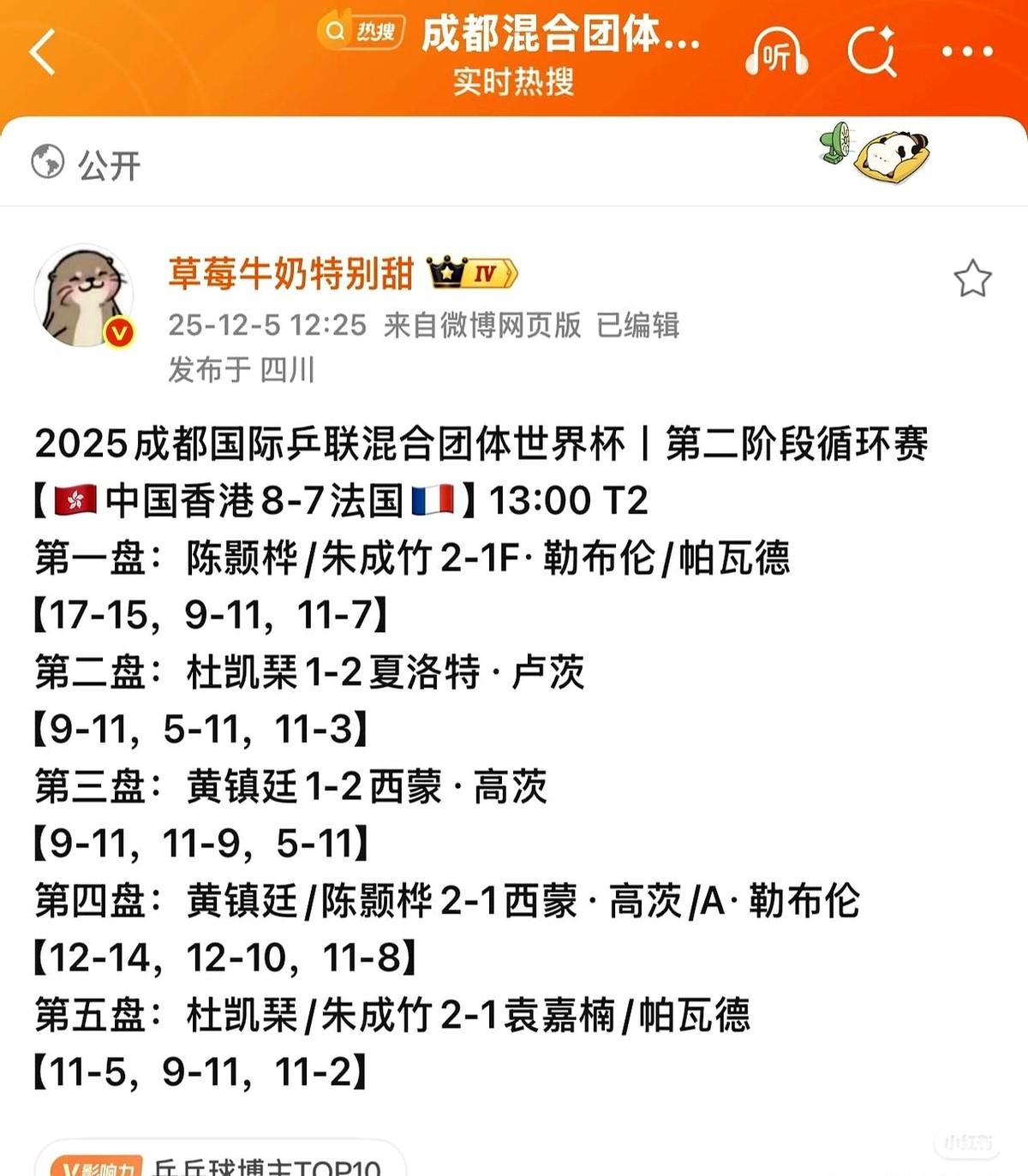 港队这波直接炸翻! 昨天刚把瑞典队拉下马来,今天又8:7啃下法国队,现在网上全疯了——有人说“混双男双女双单全在咬分,每一分都拼得手心出汗”;也有人说“之前想都不敢想港队能进四强,这波直接杀进顶级局”;甚至有人说“去年还在八强边缘晃悠,今年突然就成‘热血黑马’了”! 要知道港队之前总被说“关键时刻掉链子”,去年世锦赛因为女双失误没进八强,还被骂“软脚虾”,谁能想到今年拼得这么狠? 女单那个小姑娘连救三个赛点时,腿都在抖还是咬着牙打,说白了就是平时练得够狠,才敢在关键战里豁出去! 港队明天冲半决赛,你们说能再给咱们整个“绝杀名场面”不?