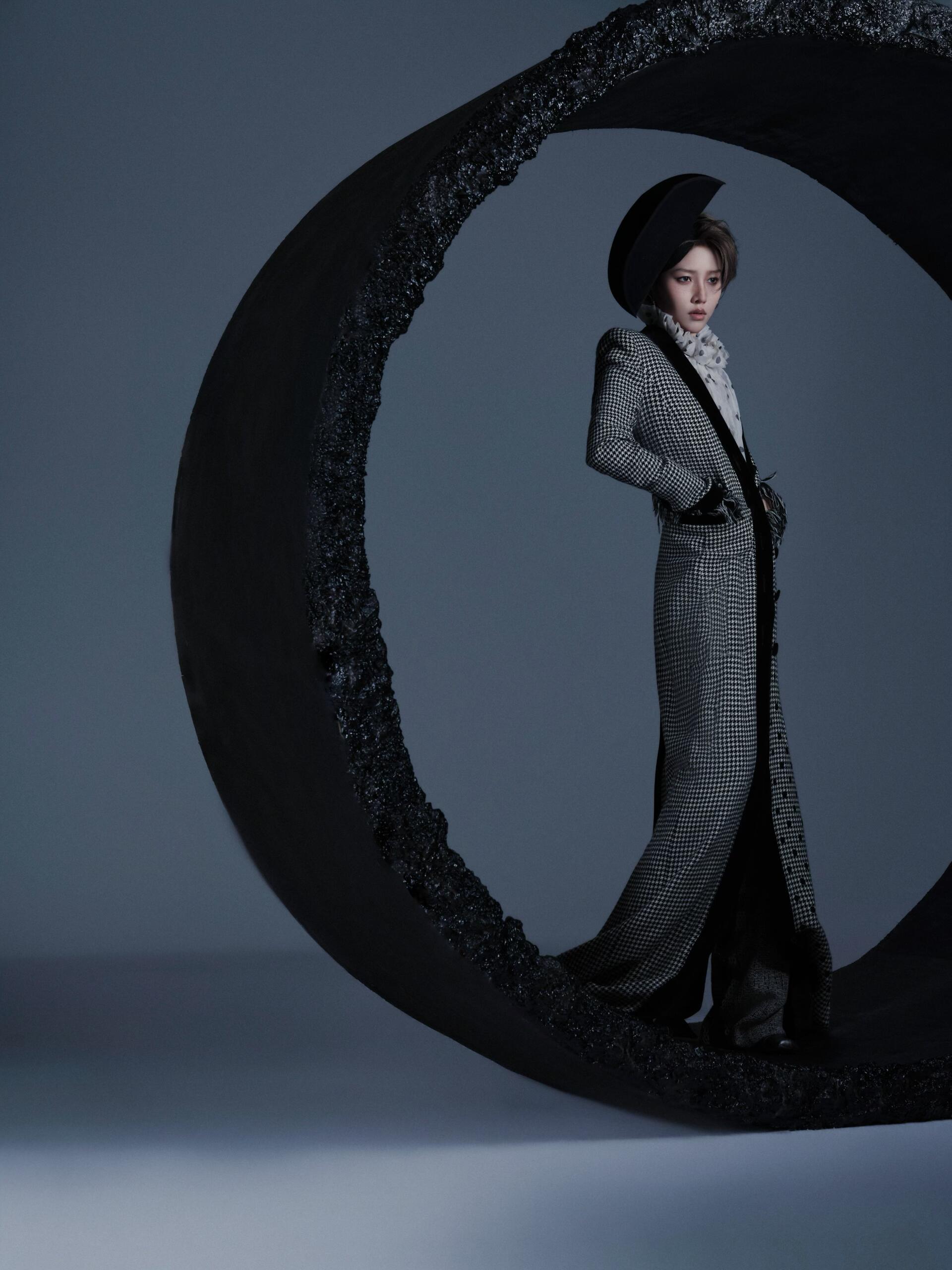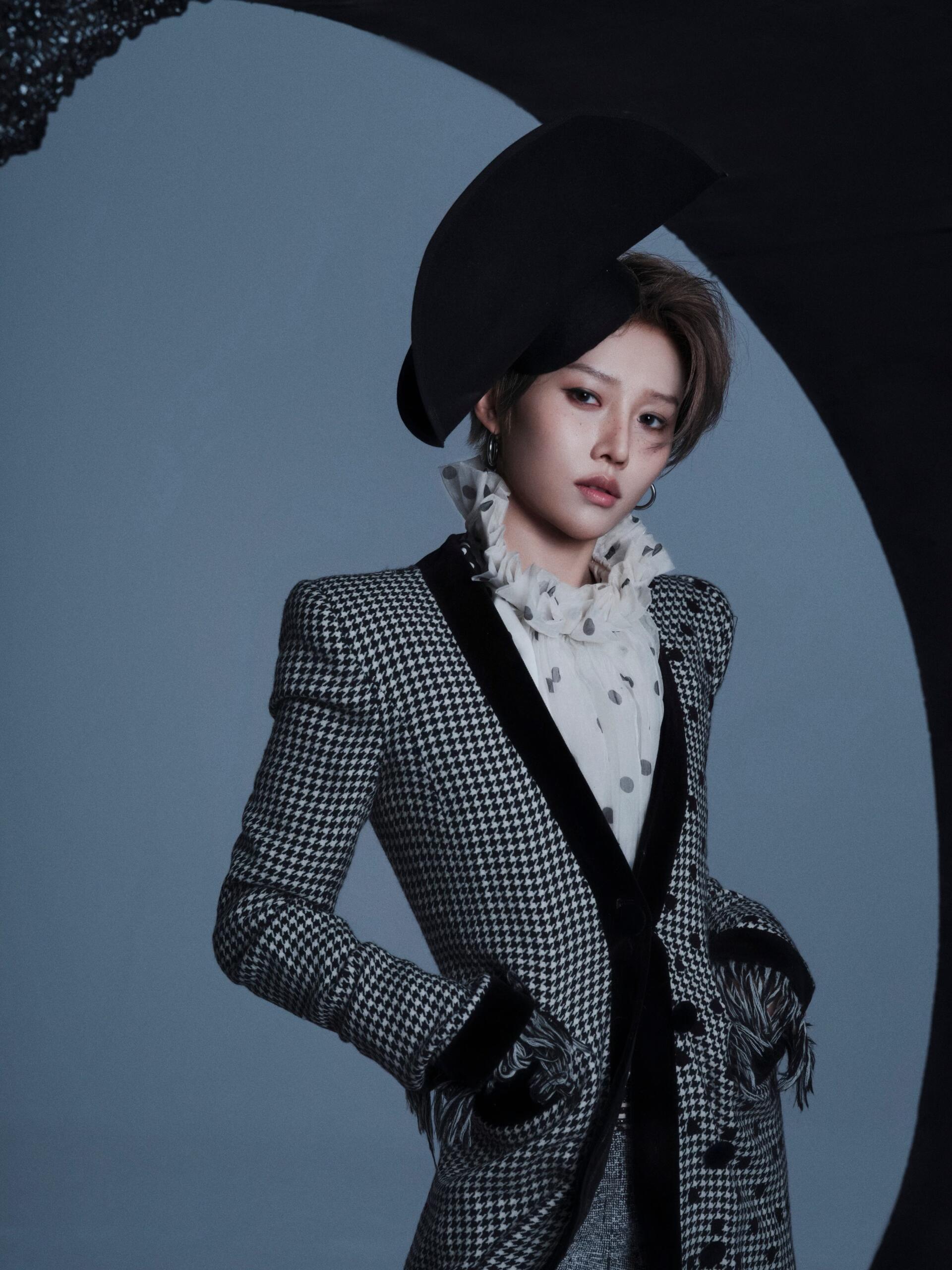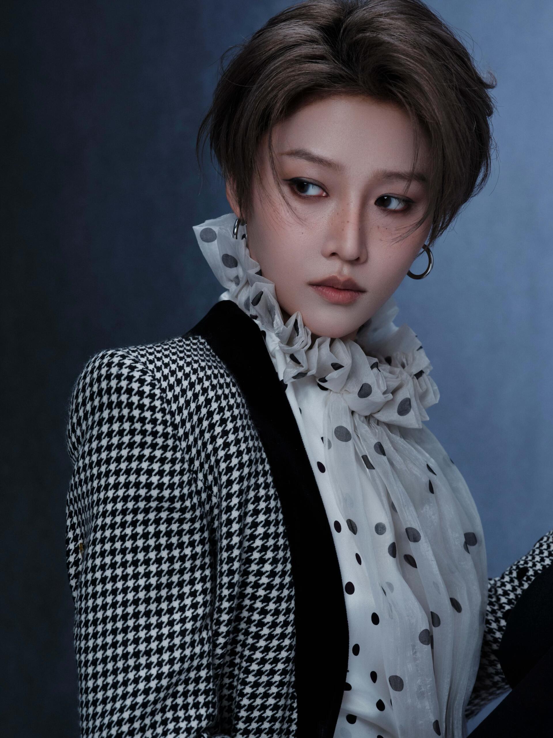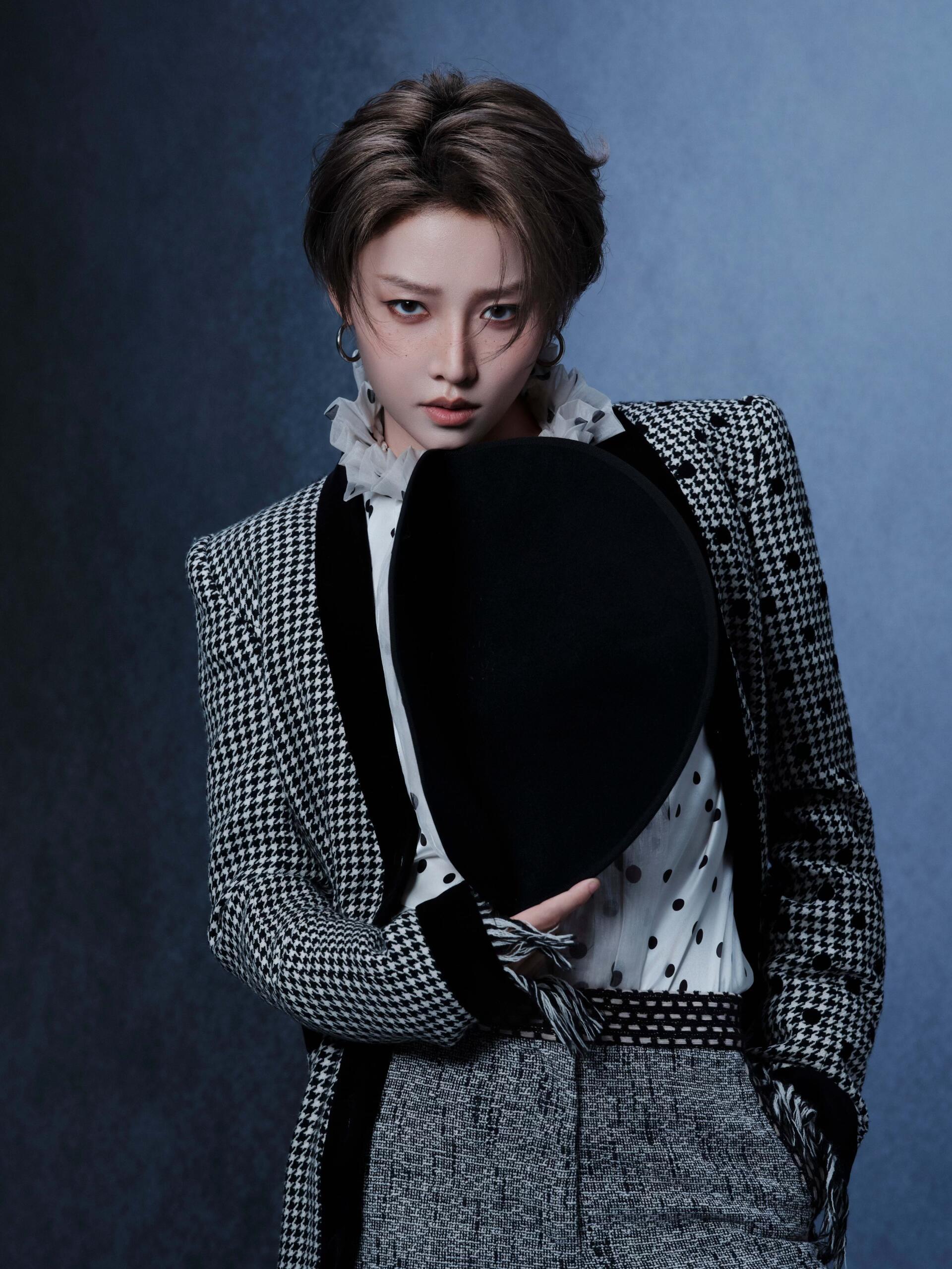 刘雨昕尖叫之夜首套造型图,上身Ronald van der Kemp25秋冬高定,千鸟格长风衣,内搭黑白波点衬衫,帅气又时髦!尖叫之夜明星造型出图