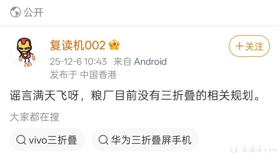 数码闲聊站(小号)说小米目前还没有三折叠的项目规划。目前只有华为和三星做了三折叠,之前有消息说荣耀也会做,不知道明年会不会有更多的品牌。