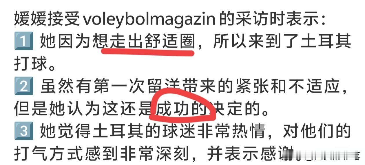 一起听听王媛媛对自己留洋的感受[呲牙] 她用“走出舒适圈”和“成功的决定”这两组