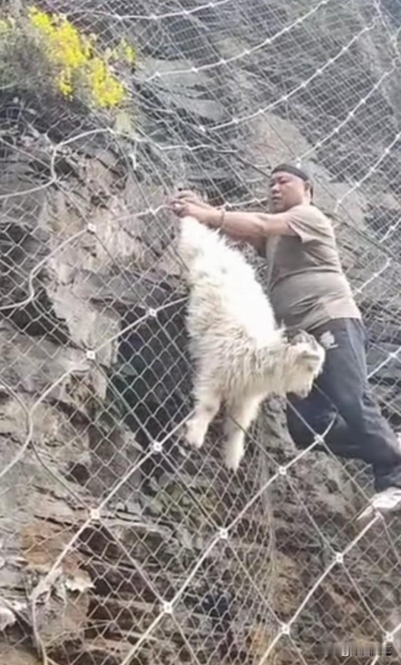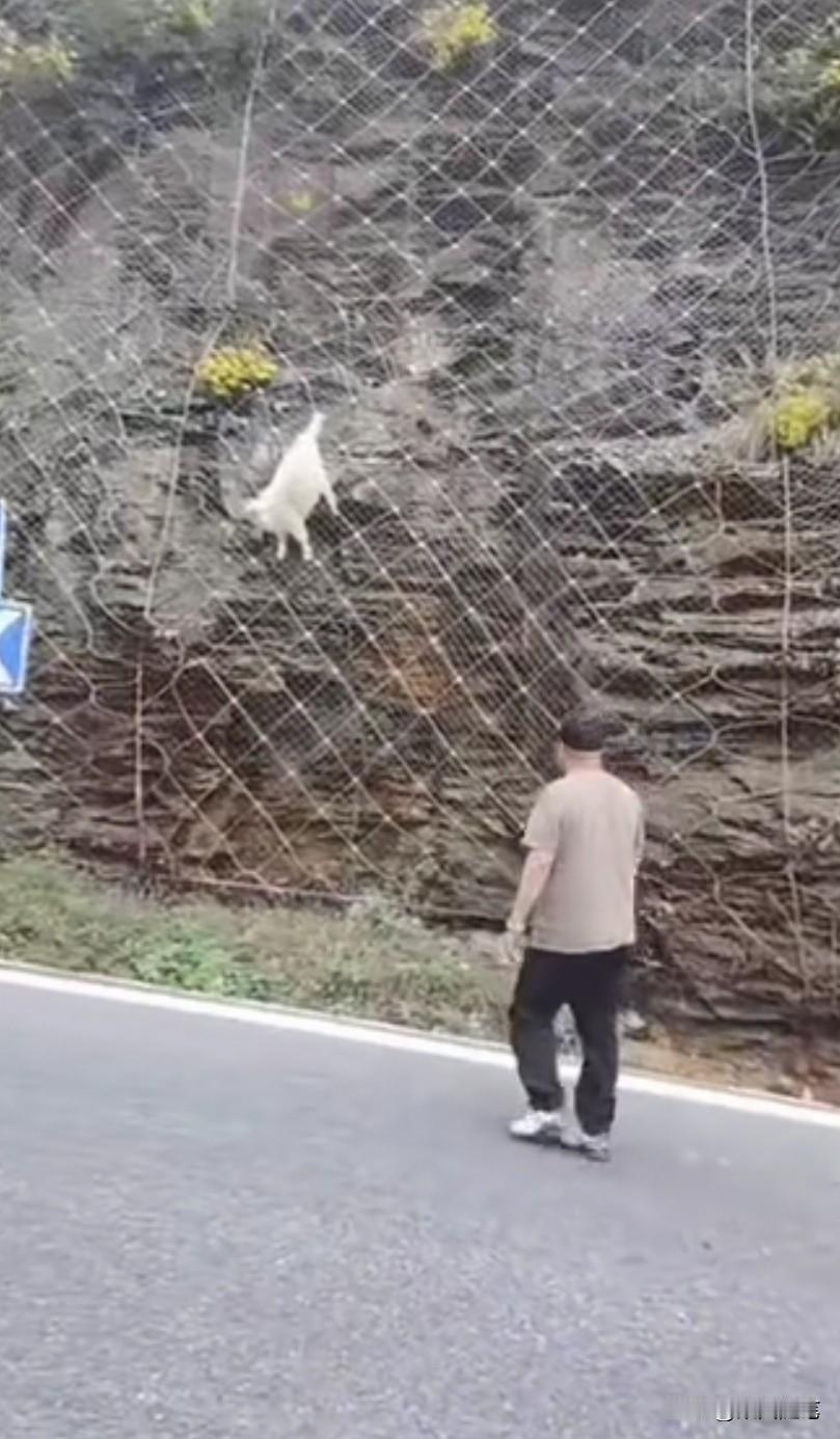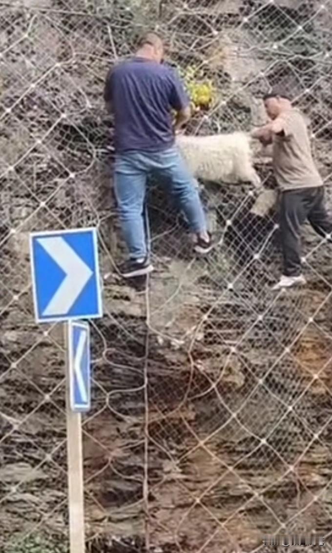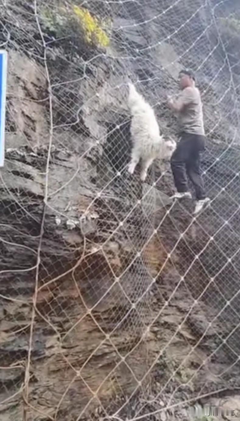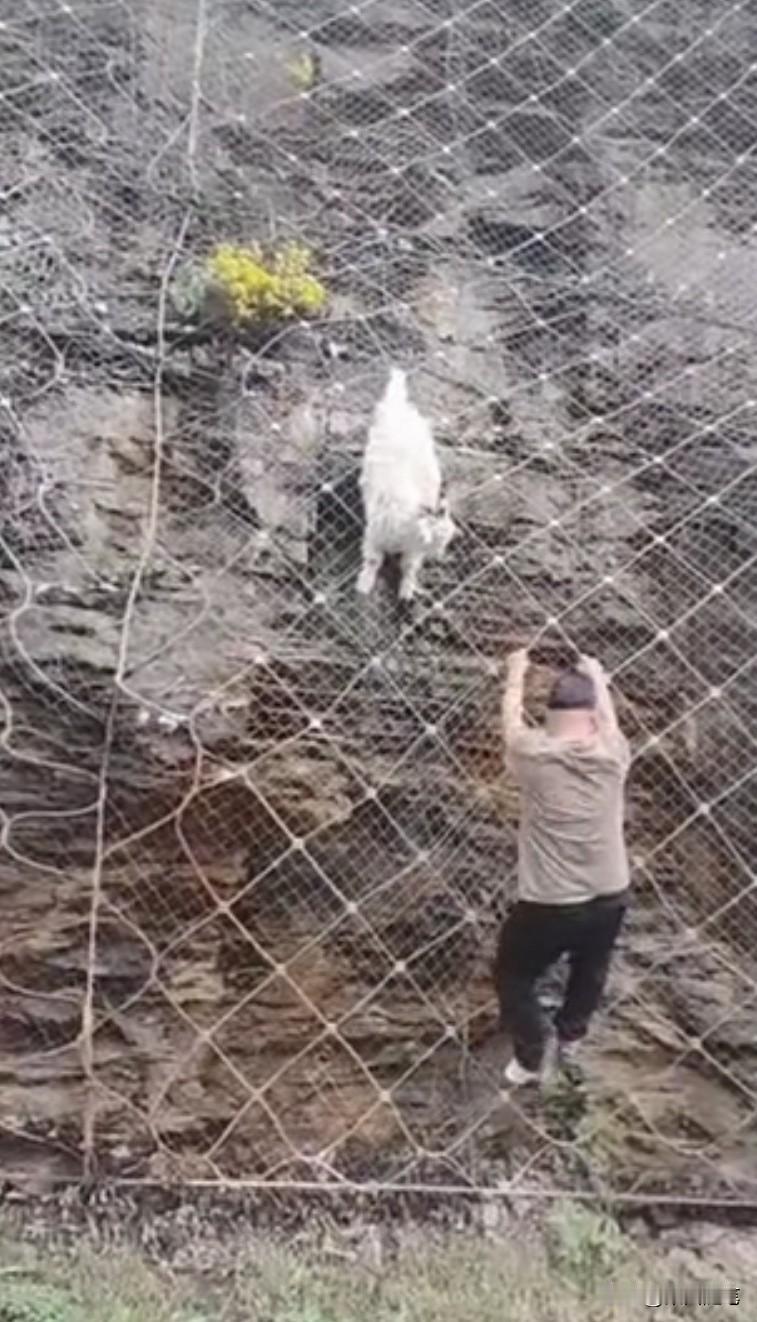 四个人合力救助,一只山羊成功脱险。朋友发来视频,说他们自驾旅游途中,行驶在一条公路上时。发现一只山羊挂在半山坡铁丝编织的网孔上,挣扎着下不来了。如果没有人救助,这只山羊必死无疑。这时,有人发现后,立刻将车停在路边前往救助。 视频中看到,一灰衣男子沿铁丝网孔爬上山坡山羊遇险处发现由于山羊曾经为了逃生拼命挣扎,铁丝网线已经变形,将山羊一只蹄子牢牢捆绑住,根本摘不下来。 这时,一名骑电动车的蓝衣男子正经过此处,发现此事儿立刻前来帮忙。他爬到山坡处,用手托住羊的身体上举,想缓解山羊下沉铁丝下拉的压力,让灰衣男子将铁丝松开,但也没能如愿。 这时,在山坡下一红衣女子听说需要工具,便请求一红衣男子帮助。红衣男子从车上找到了一把钳子,从山坡下递了上去,经这四人合力救助,这只山羊成功脱险。 这只山羊走了好远,还回头向这边张望仿佛在说:“谢谢”。 其实,人与大自然然和平相处,是人类得以生存的必要保障。生态环境保护得好,人与各类动物相依生存,人类与地球才有一个美好的未来。你说呢?山羊 峭壁上的山羊 悬崖上的北山羊 路遇山羊