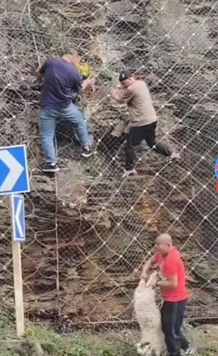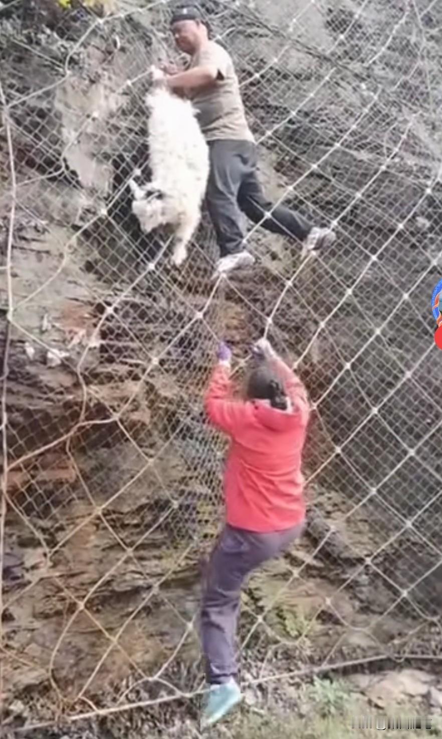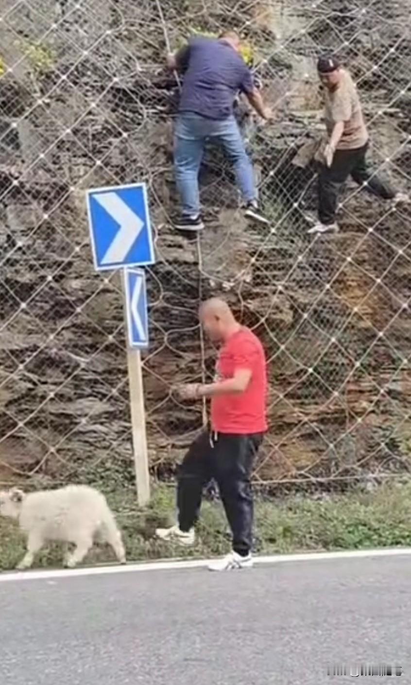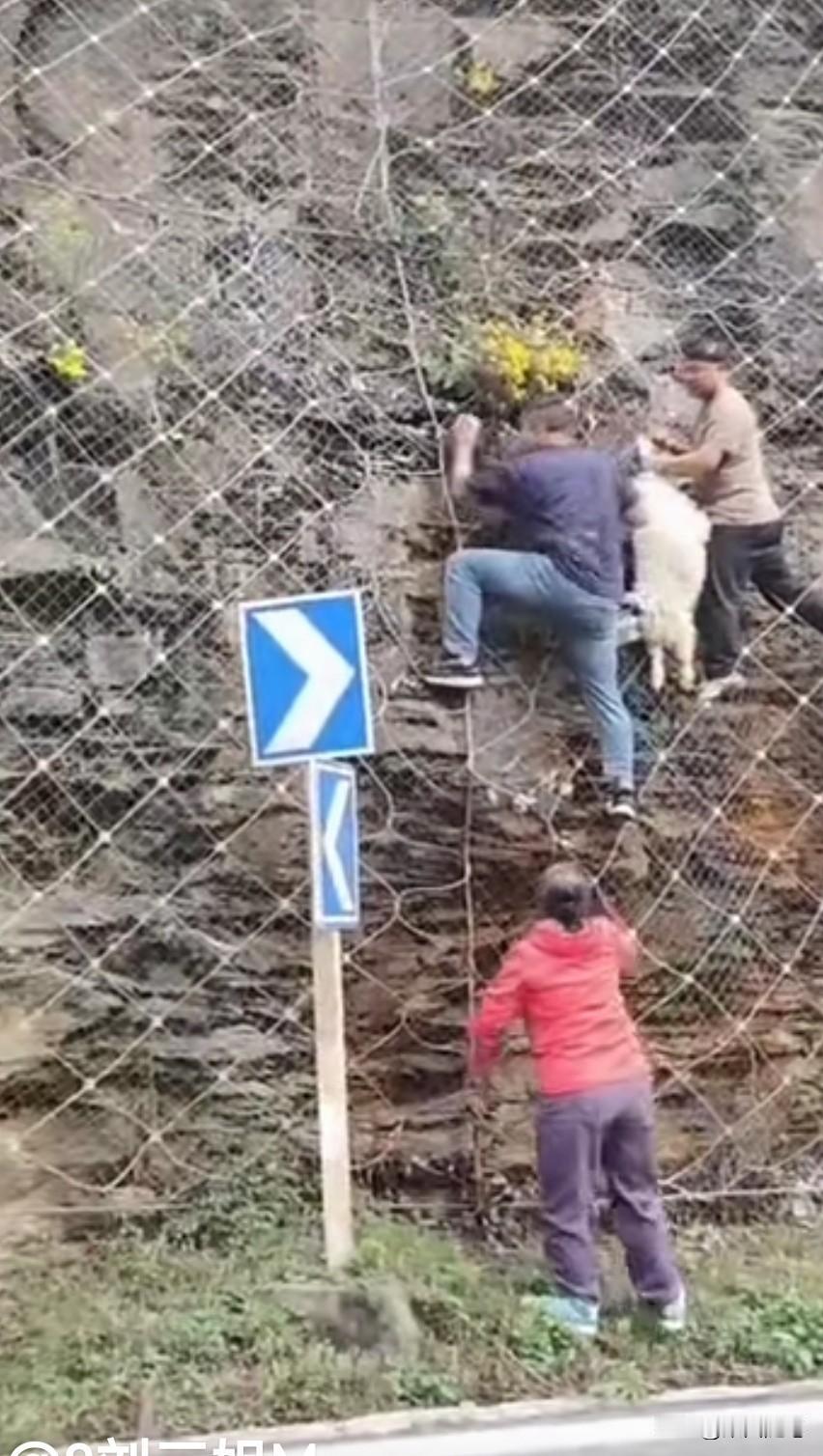 四个人合力救助,一只山羊成功脱险。朋友发来视频,说他们自驾旅游途中,行驶在一条公路上时。发现一只山羊挂在半山坡铁丝编织的网孔上,挣扎着下不来了。如果没有人救助,这只山羊必死无疑。这时,有人发现后,立刻将车停在路边前往救助。 视频中看到,一灰衣男子沿铁丝网孔爬上山坡山羊遇险处发现由于山羊曾经为了逃生拼命挣扎,铁丝网线已经变形,将山羊一只蹄子牢牢捆绑住,根本摘不下来。 这时,一名骑电动车的蓝衣男子正经过此处,发现此事儿立刻前来帮忙。他爬到山坡处,用手托住羊的身体上举,想缓解山羊下沉铁丝下拉的压力,让灰衣男子将铁丝松开,但也没能如愿。 这时,在山坡下一红衣女子听说需要工具,便请求一红衣男子帮助。红衣男子从车上找到了一把钳子,从山坡下递了上去,经这四人合力救助,这只山羊成功脱险。 这只山羊走了好远,还回头向这边张望仿佛在说:“谢谢”。 其实,人与大自然然和平相处,是人类得以生存的必要保障。生态环境保护得好,人与各类动物相依生存,人类与地球才有一个美好的未来。你说呢?山羊 峭壁上的山羊 悬崖上的北山羊 路遇山羊