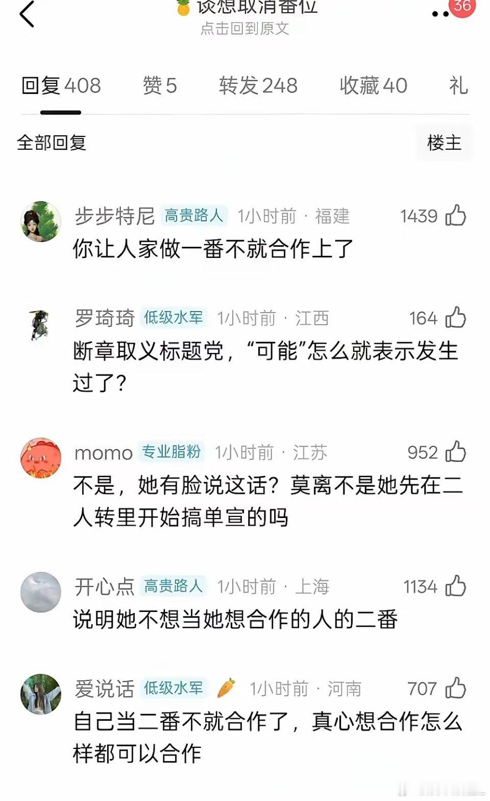 白鹿真敢说,她表态想取消番位,觉得因为番位,可能想合作的演员就合作不上。结果网友神翻译,说她不愿意给她想合作的人当二番…番位之上是咖位,咖位之上是脸面。番位没有演员说的那么轻巧。出门在外混的,谁能抛弃自己的脸面。难上加难。要不就自己给自己台阶。要不就能让对方屈服。反正演员真的不要提番位。越提越解决不了这个问题