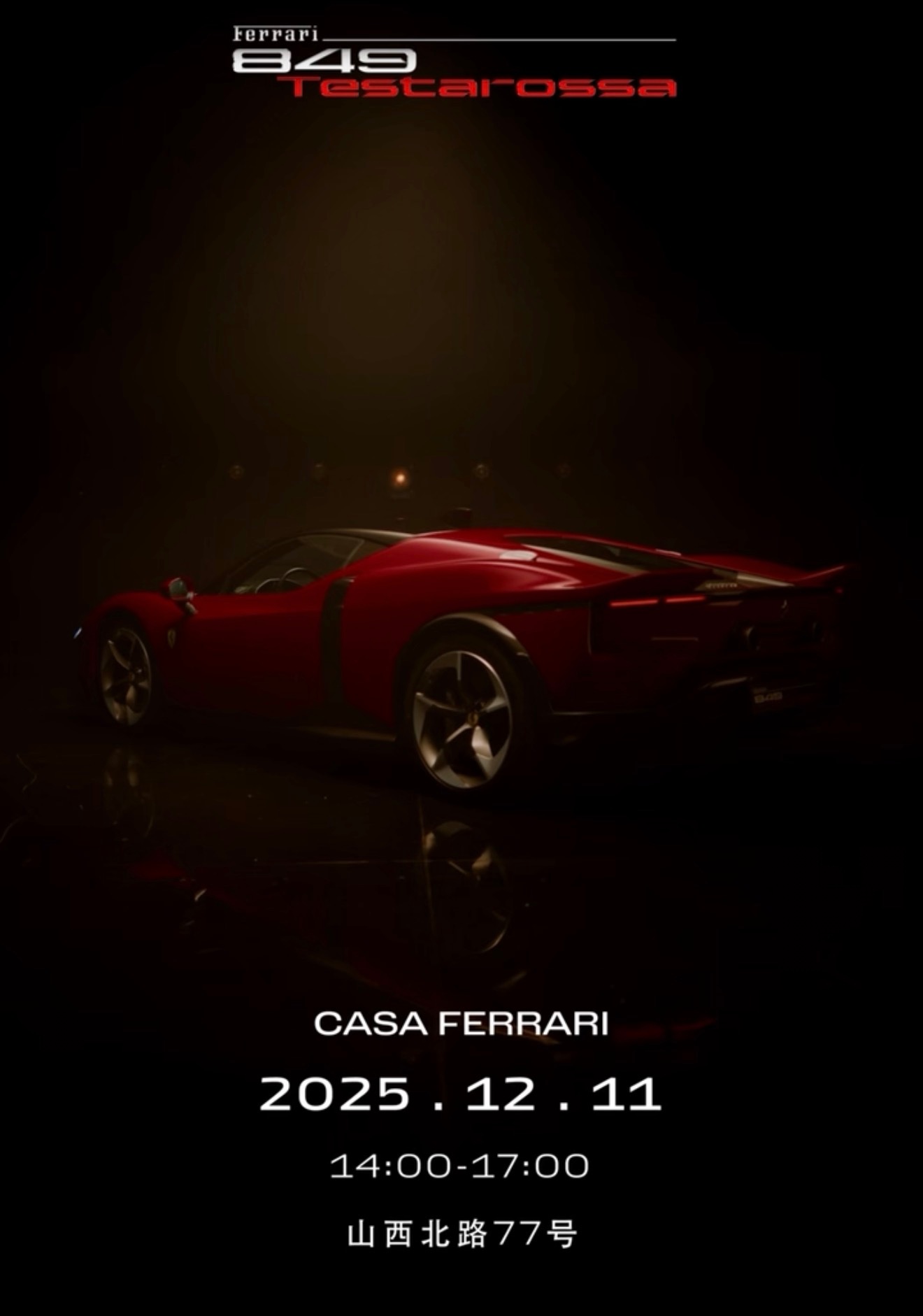 收到邀请函啦~法拉利全新849 testarossa下周正式中国发布会至此,法拉利全系产品完成更新换代。进入到激进美丽的全新设计语言世代
