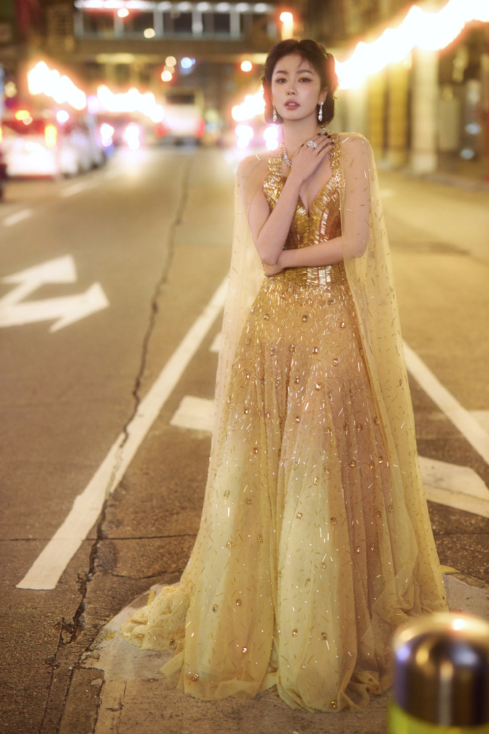 白鹿尖叫之夜出图了白鹿单肩黑裙街头港风感白鹿尖叫之夜出图了,白鹿单肩黑裙街头港
