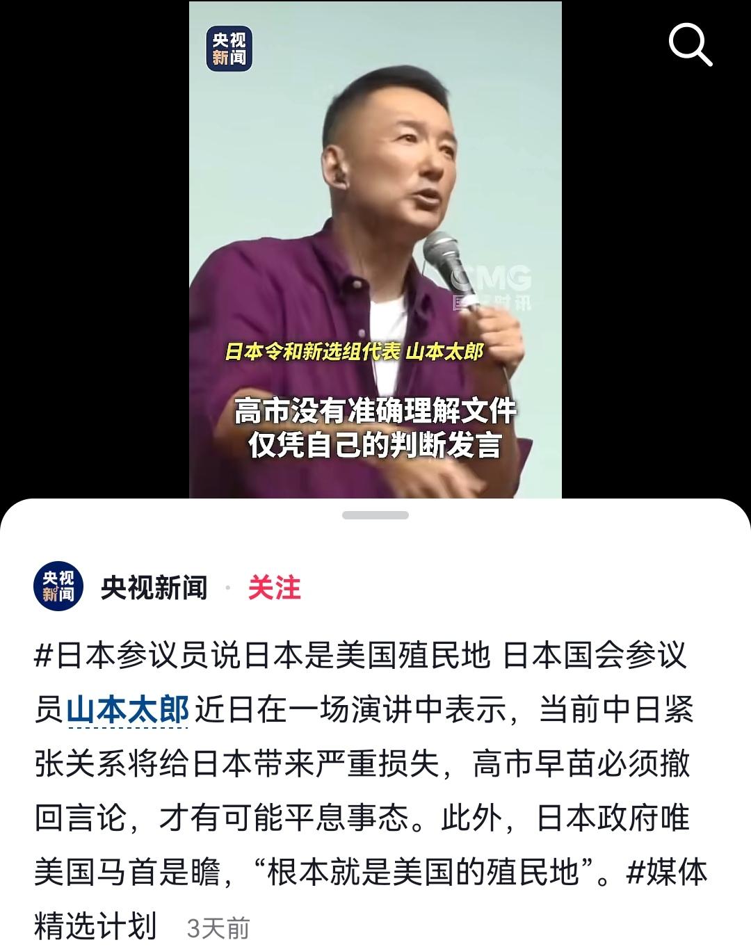 山本太郎把日本政坛那层“体面”的窗户纸给捅破了!他直言日本就是美国的殖民地,还批评高市早苗的言论会把中日关系拖进坑里。从驻日美军基地的治外法权,到美国一施压日本就跟着对他国搞制裁,再到军费年年涨都得看美国脸色,这些事放一起,殖民地这个词虽然难听,却精准戳中了日本主权不完整的痛点。 中日是近邻,贸易、产业链绑得死死的,关系一紧张,日本企业丢订单、老百姓买贵货,最后吃亏的是自己。 这是在骂日本政坛的短视,为了讨好美国,连本国利益都能往火坑里推。山本的讲话,是日本内部对依附型外交的一次反弹。当一个国家的对外政策不是先顾自己的利益,而是先看大哥的脸色,那殖民地的吐槽,就不只是情绪发泄,而是现实给的一巴掌!