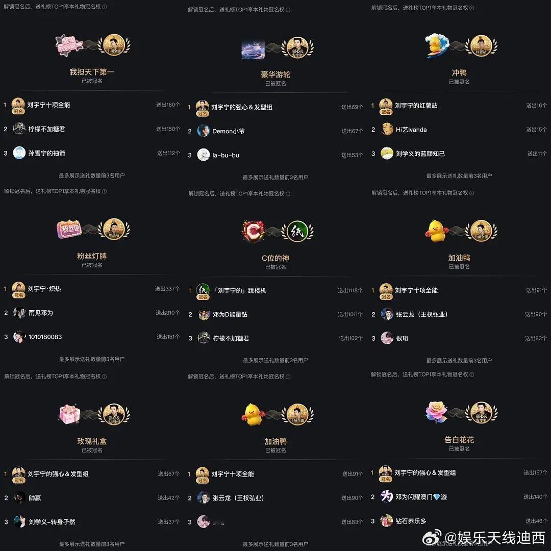 刘宇宁粉丝一氪惊人,把尖叫之夜礼物全冠名了,线下冠名提词器还不够,线上还要全冠名😂 尖叫之夜