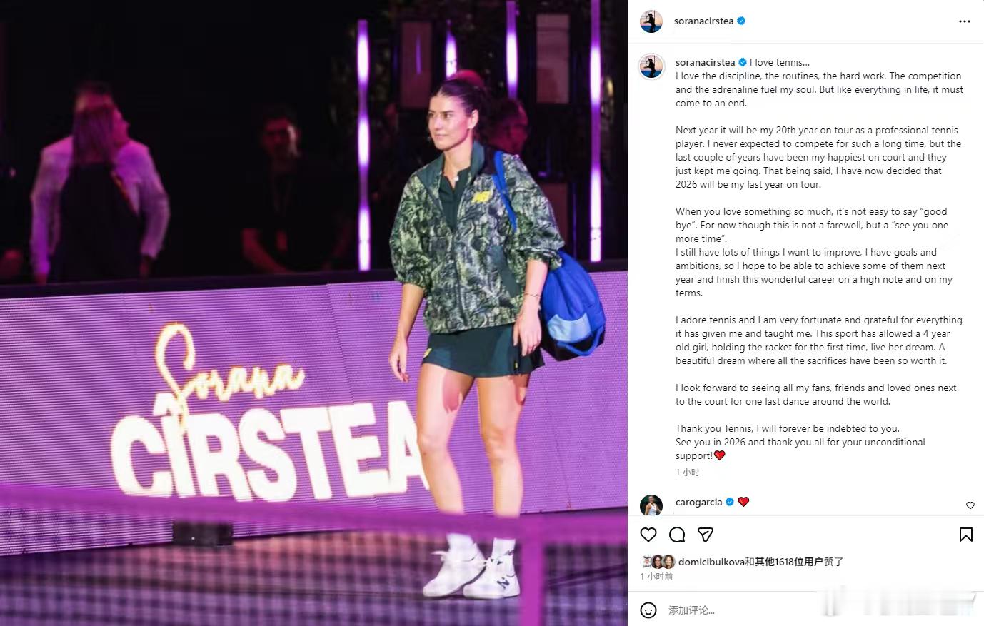 科斯蒂亚宣布2026赛季将是自己征战职业网坛的最后一年。一位横跨娜姐、帅姐、蔷哥和文后的中国人民的老对手、使用过威尔胜、百宝力和尤尼克斯的女球员要离开我们了。