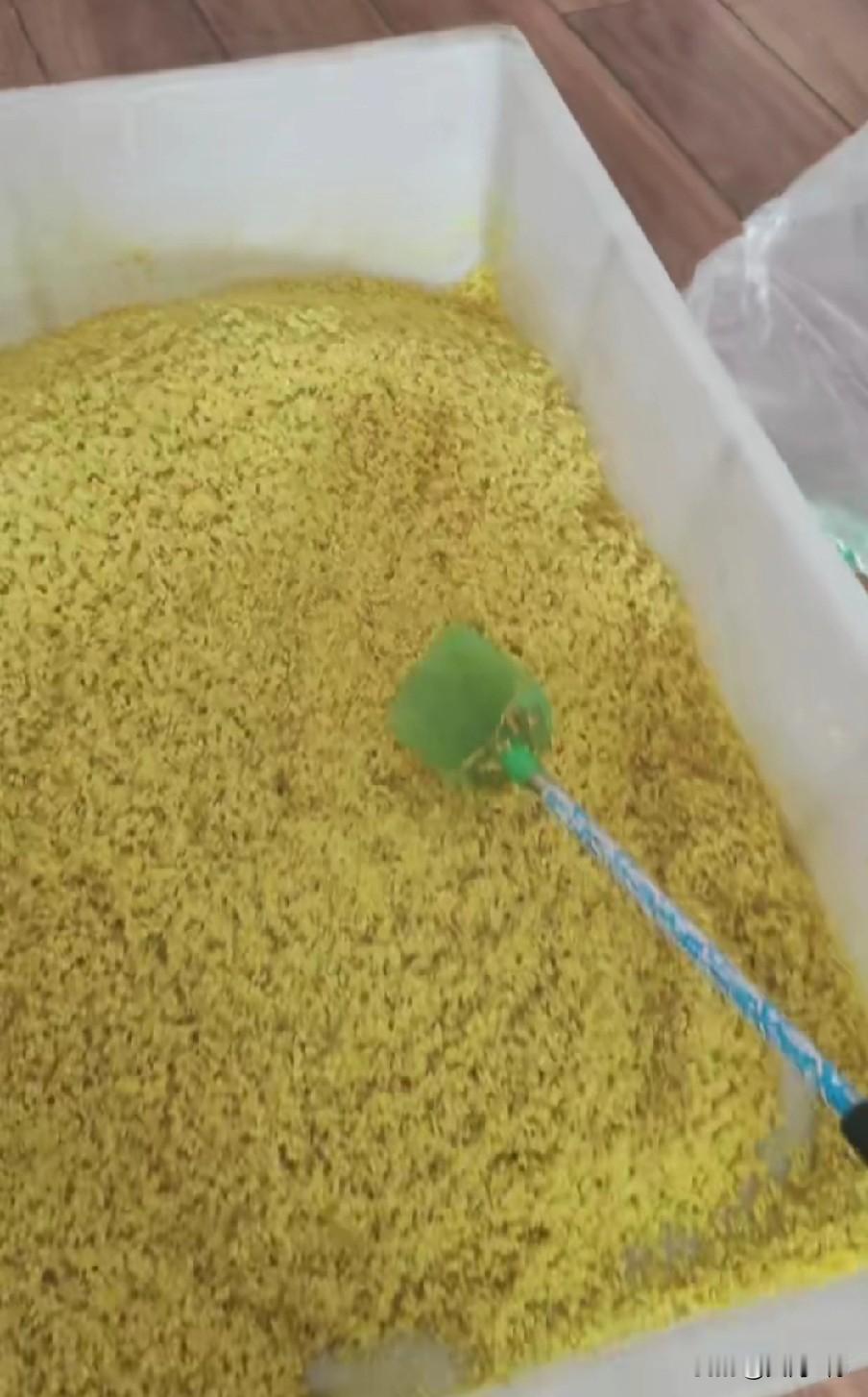 第一次做这么多酒米,帮粉丝做了了二十斤酒米。 开始在粉丝群互动的时候就有粉丝朋友提议我帮他做些酒米。 开始我答应了,然后接连就有粉丝+1 然后就从五斤加到了二十斤[捂脸] 没办法,已经答应了,只好硬着头皮做。 最后经过商量,一个朋友出米,一个朋友出酒。 剩下的材料我来补齐。 等到材料到齐以后,直接开始做。 先把大米放锅里微炒一下,为了更好吸收酒液,炒制期间可以放点羊油。 大米炒好以后开始调制料酒。 一斤大米大概需要二三两白酒,我准备了五斤60度白酒(50度以上的粮食酒就可以) 一包诱试剂可以配两斤米,直接把十包诱试剂放白酒里化开。 然后加入浓缩麝香酒。 料酒化开以后直接倒进大米里,然后充分搅拌均匀。 等待大米完全吸收了料酒以后加入一包中药酒窝料饵料,再加一包奶香饵料,和酒米拌匀就可以了。 最后用密封袋分装打包,所有步骤就完成了。 这款酒米但味形足够,都是大板鲫喜欢的味道,而且独特的雾化效果可以做到真正的诱鱼。打窝酒米