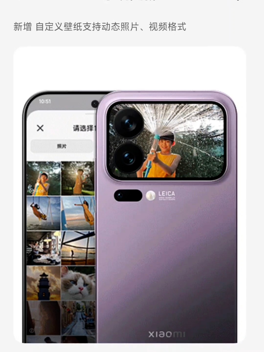 小米澎湃OS3 Xiaomi 17 Pro系列“妙享背屏”新增支持将Live图或视频设置为壁纸,赶紧试试吧。