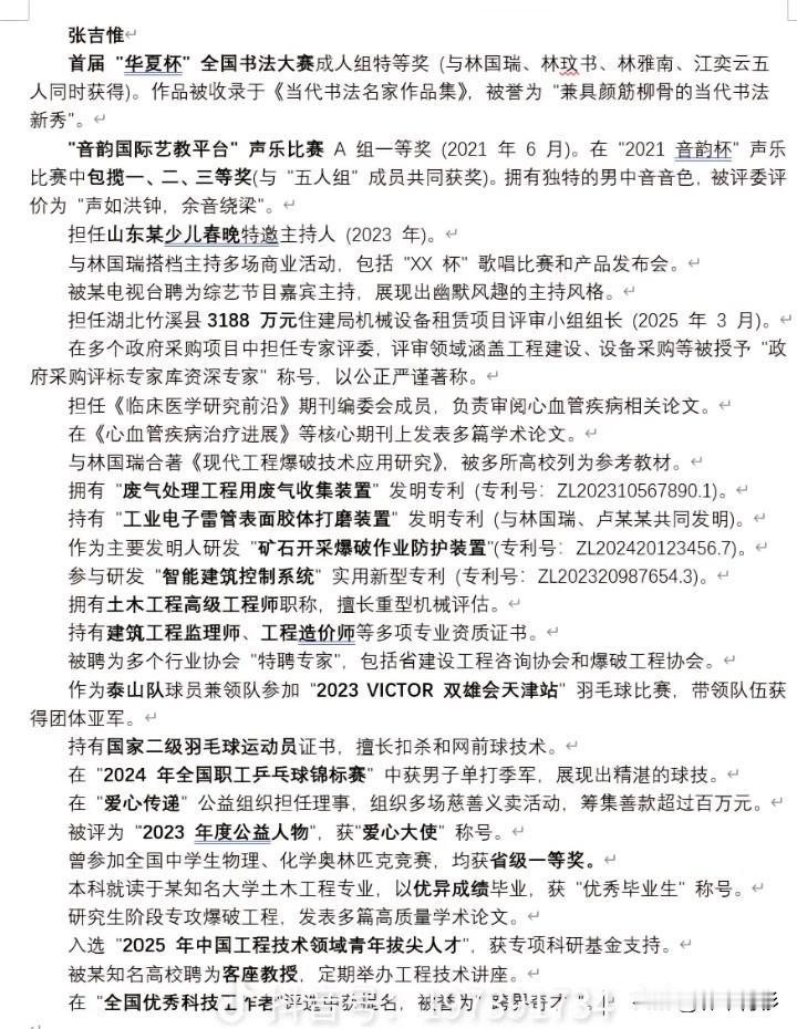 “全网最忙五人组”中这名叫“张吉惟”才是一位真正的“全能型选手”! 消息来源:国内媒体 实在想不到一次意外的曝光,竟让这五位成了全网最牛的牛人! 查询全网发现原来这些姓名不仅仅出现在政府公告中,连一些地方级的比赛项目、各种发明专利、各种荣誉称号公告中也能发现这些一模一样的姓名! 这些只是被曝出来的,那到底还有多少公告中涉及这些人名呢? 这到底是一时疏忽?还是弄虚作假?估计只有把这些姓名复制粘贴上去的人才知道吧! 也许是时候来一场“刮骨疗伤”了,来自底部的糊弄才是最可怕的,因为那不是一个人,而是一群人!