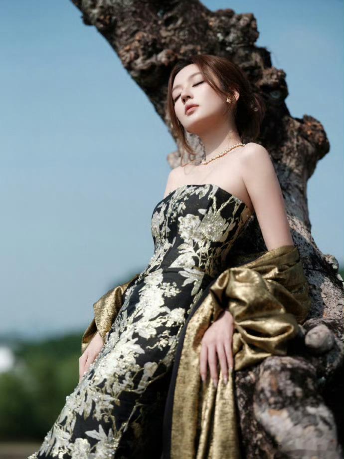 何瑞贤新中式鎏金玫瑰何瑞贤这造型直接封神!新中式鎏金黑裙配珍珠链,清冷眼神混着温柔,优雅到犯规谁能不心动~