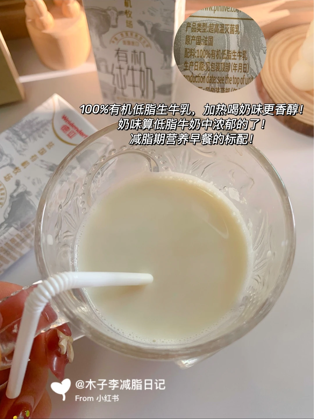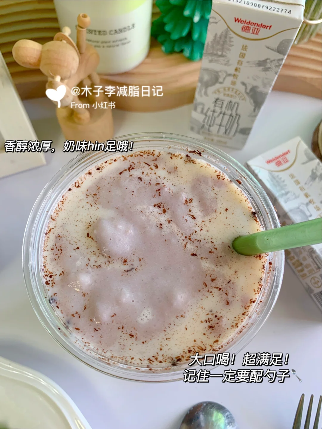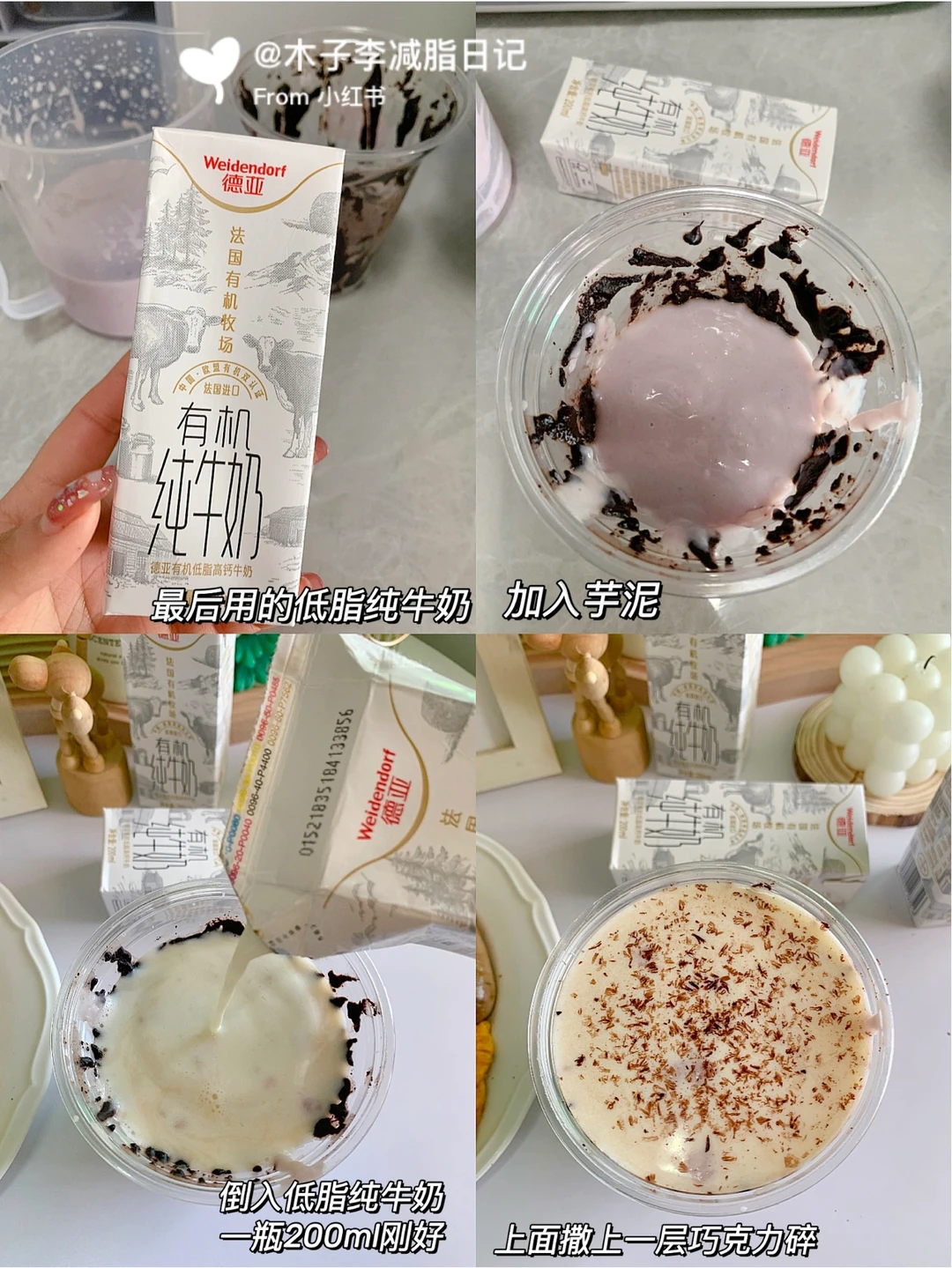 📣:前段时间开箱了德亚有机全脂高钙纯牛奶!喝着不错奶味hin浓!这次收到德亚品牌赞助投喂的有机低脂高钙纯牛奶!奶味依旧香浓醇厚,关键低脂 减脂人放心冲~而且是有机牧场奶源,天然健康还有中欧双认证,品质有保障,咱喝着也放心!看了一下每百毫升中的原生优质乳蛋白有3.3g,原生高钙含量有120mg~营养丰富好吸收!还蛮适合一家人喝的有机奶!我今天用有机奶做了简单版的热饮太适合冬季了,牛奶和芋泥真滴超配的(做法如图)简单又好喝,芋泥控快去做!这就是冬季的小幸福!