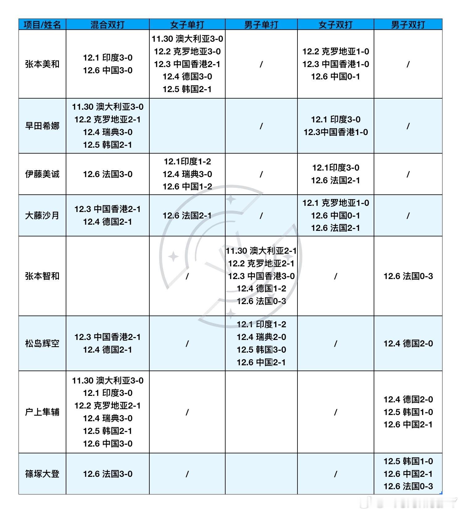 2025混合团体世界杯11.30-12.6日本队上场明细现在早田希娜还没上过女单根据日本队“雨露均沾”的原则是不是明天她会上一次女单呢