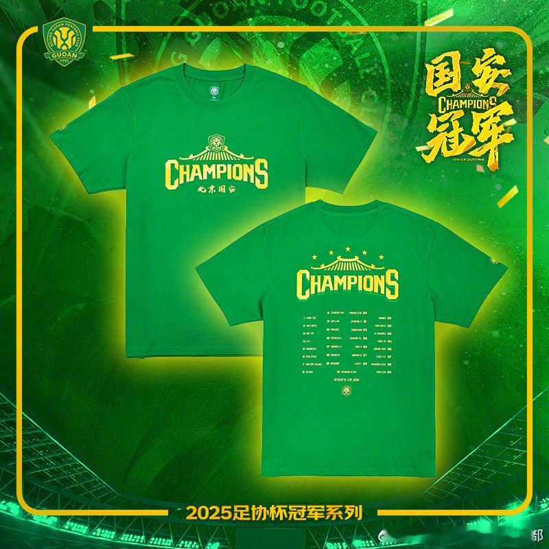 我们是冠军!2025,我们再次把名字刻在奖杯之上!荣耀需要珍藏,冠军值得纪念!限定夺冠纪念产品系列正式预售!预售渠道:北京国安旗舰店【京东、天猫、微信微商城】、孚德运动足球周边【抖音】