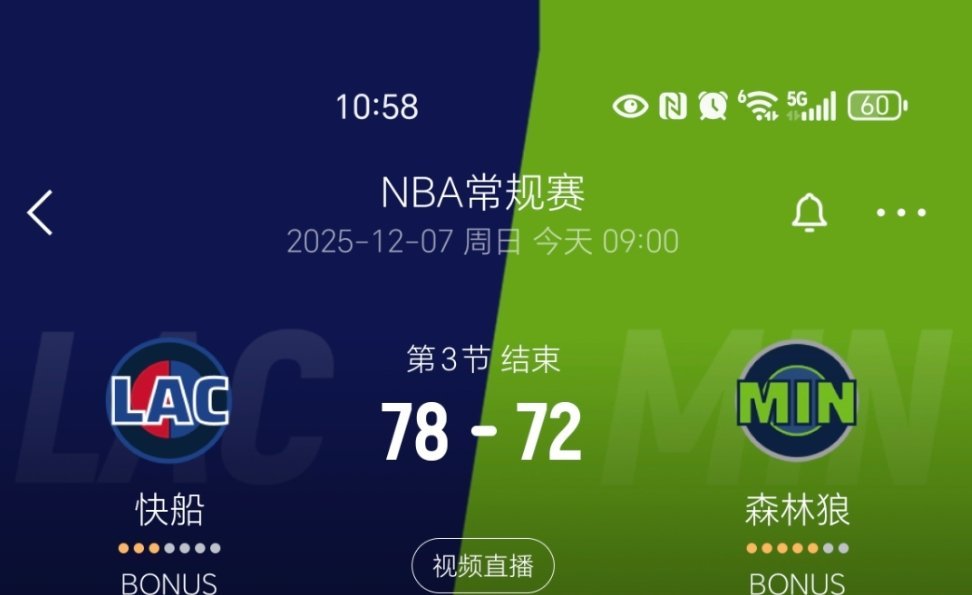 第三节结束,快船领先6分!第四节还能顶住吗?新赛季篮不住快船vs森林狼