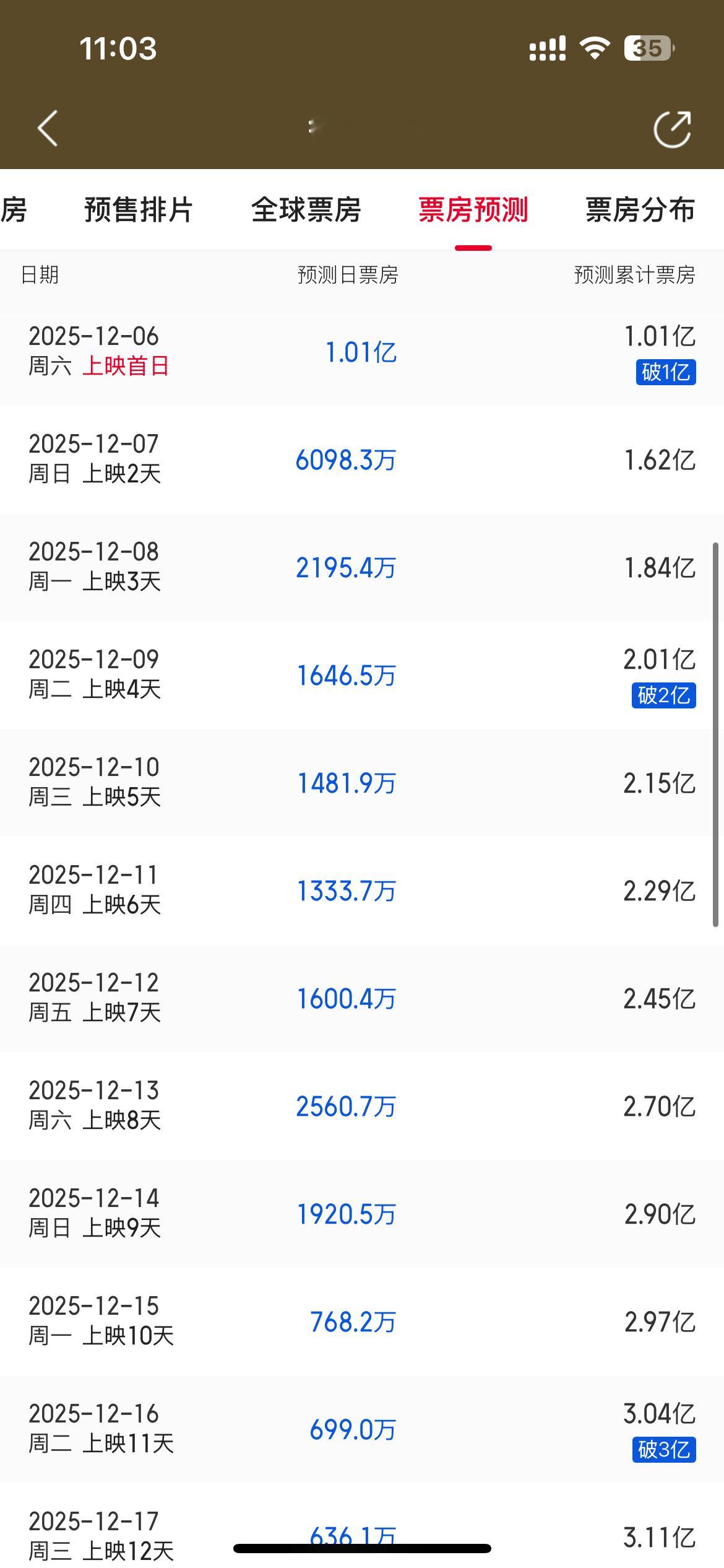电影得闲谨制总票房突破2亿,且连续两天当日预测票房都是上升趋势,走势很好,剧情