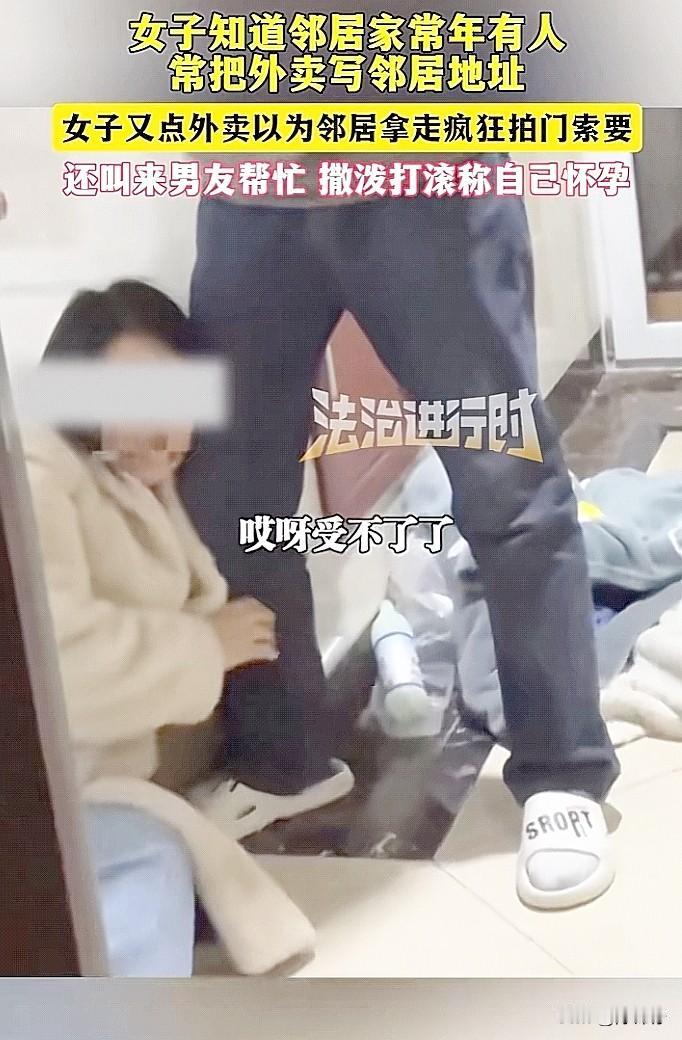 近日,辽宁一女子常年点外卖,地址却不写自己家,而是写有人居住的邻居家。可这次的外卖不见了,女子以为是邻居拿走了,就疯狂敲门索要自己的外卖,甚至还叫来自己的男友帮忙,说邻居骂她。 更离谱的是,这女子在地上撒泼打滚的说自己肚子疼,怀孕了,肚子里的娃娃都被邻居给气着了,不停的“哎哟,哎哟”的叫着。 接着三个人就吵了起来,女子男友就出来护着她,质问邻居“你是不是骂她了”,邻居说是女子先骂她的才骂回去,女子一见戳破了事实,结果又开始威胁起了邻居“赶紧找医生,要是我肚子里的孩子没了,我整死你”。 要我说啊,遇到这种撒泼不讲理的邻居,还是报警解决的好,让警察来处理!有这样邻居,简直是添堵又糟心。 你赞同只点外卖,不在家生火做饭吗 点外卖