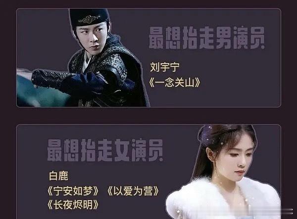 最想抬走的男女演员 刘宇宁、白鹿 白鹿不至于吧