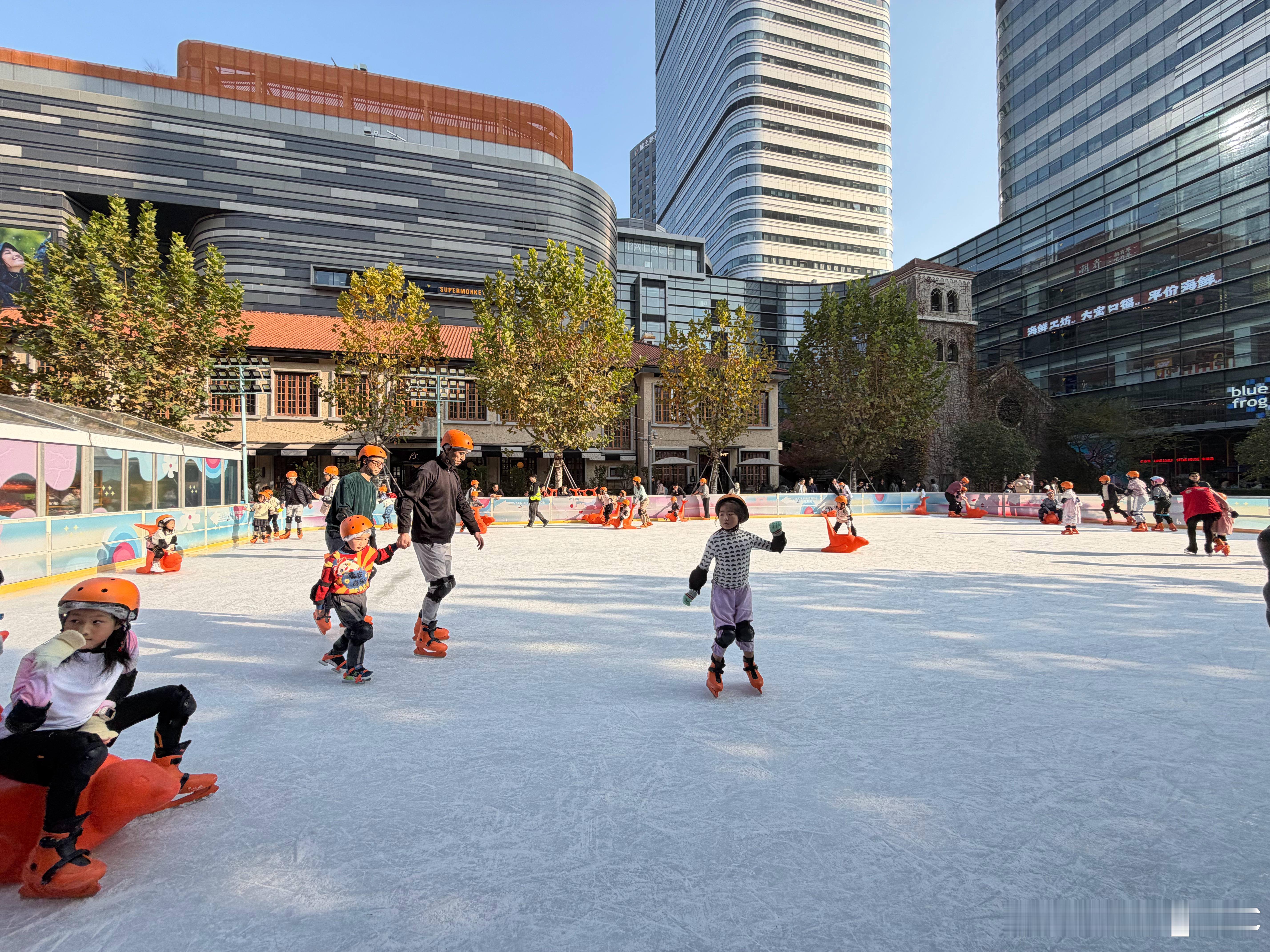 今天上海快20度的天气,户外溜冰场,这个制冷能耗拉满了吧