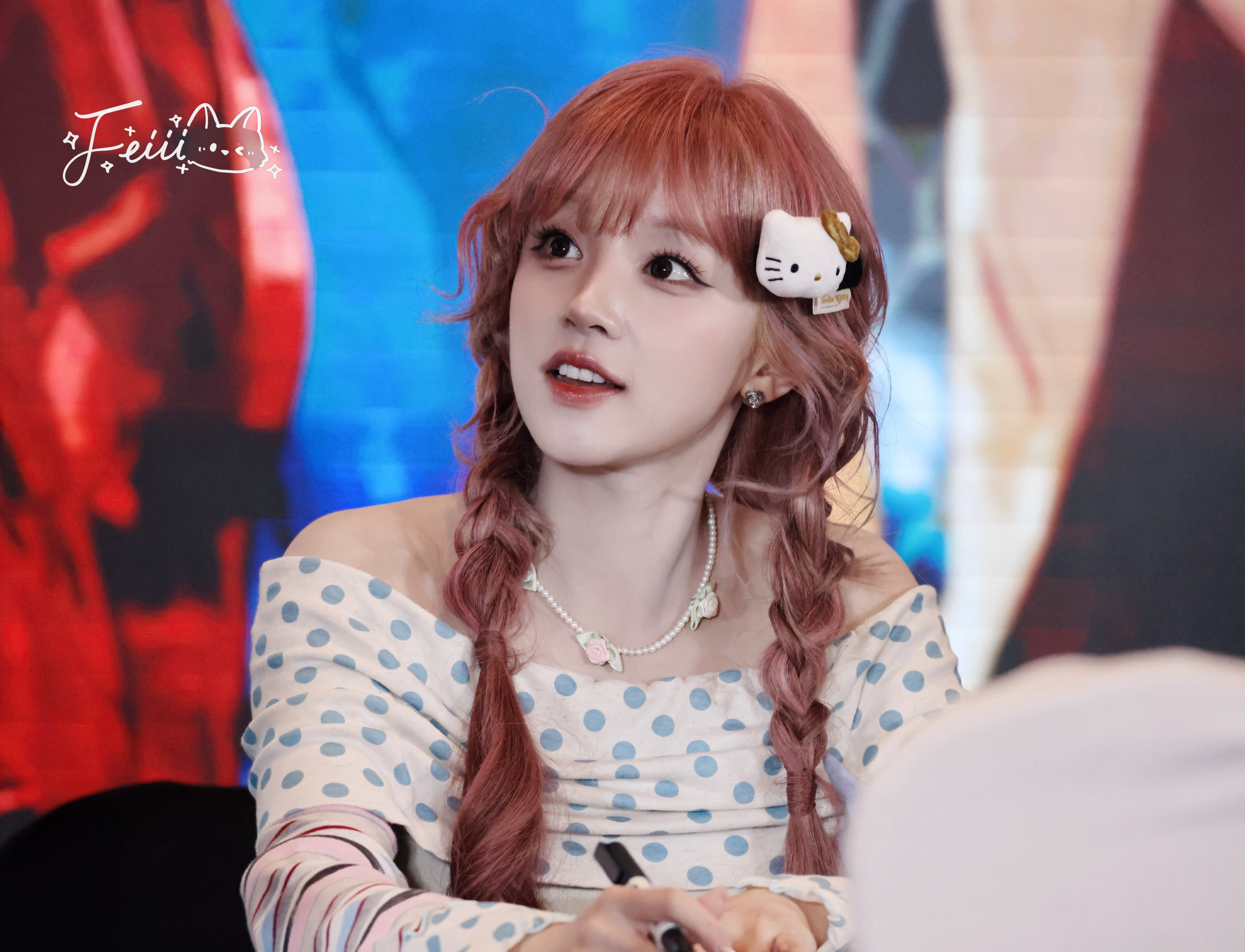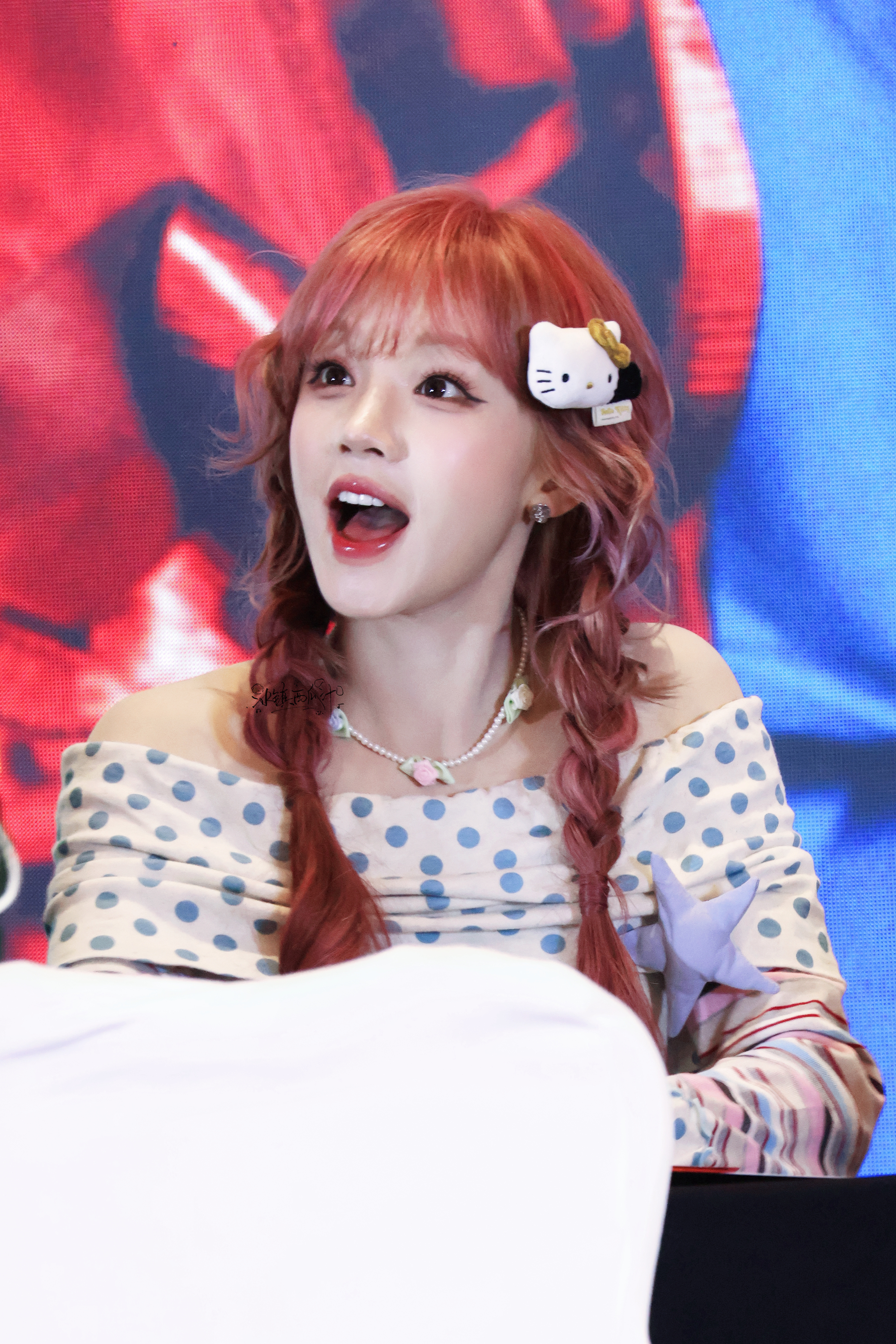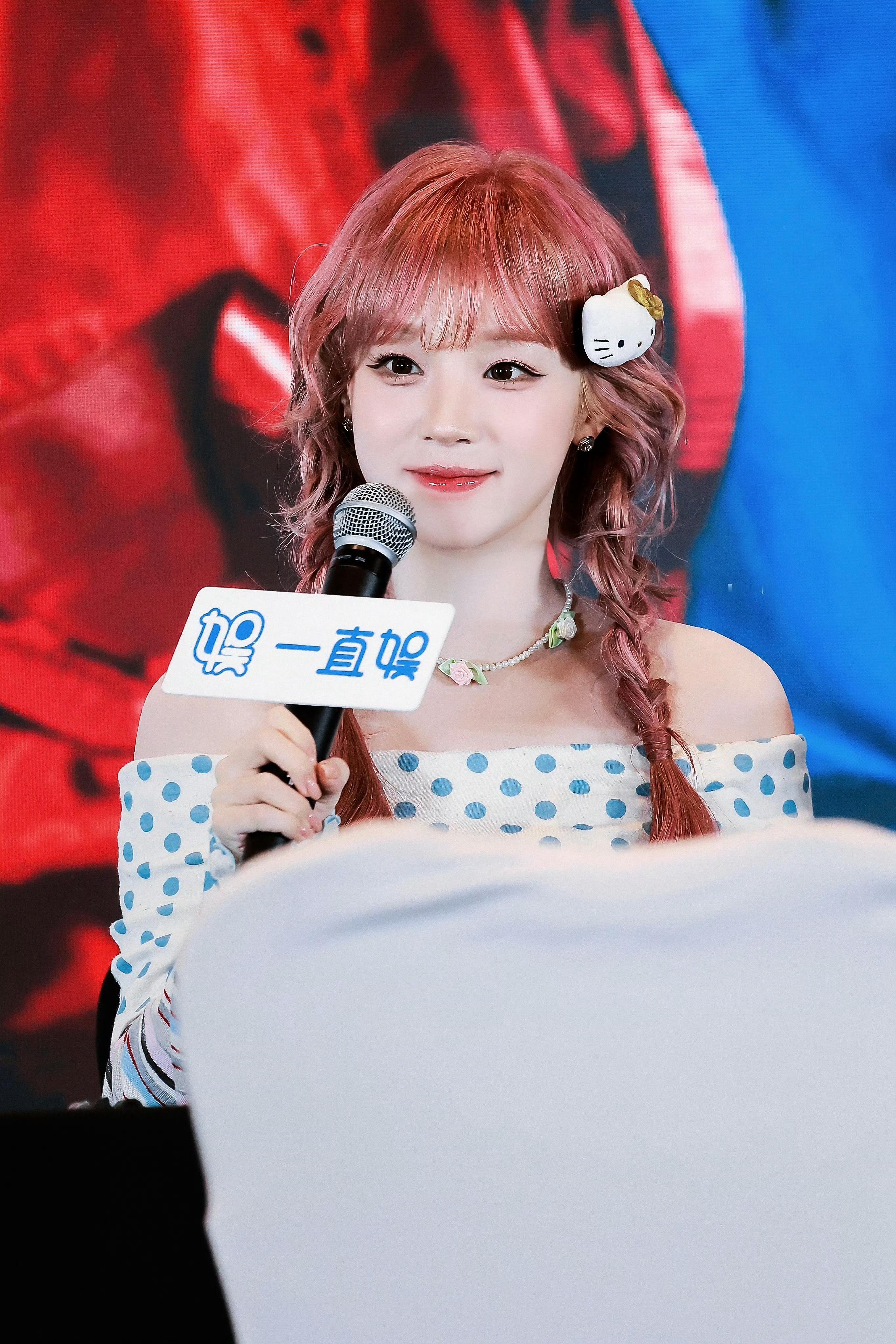 水灵水灵的宋雨琦粉发麻花辫造型宋雨琦毛绒kitty发夹