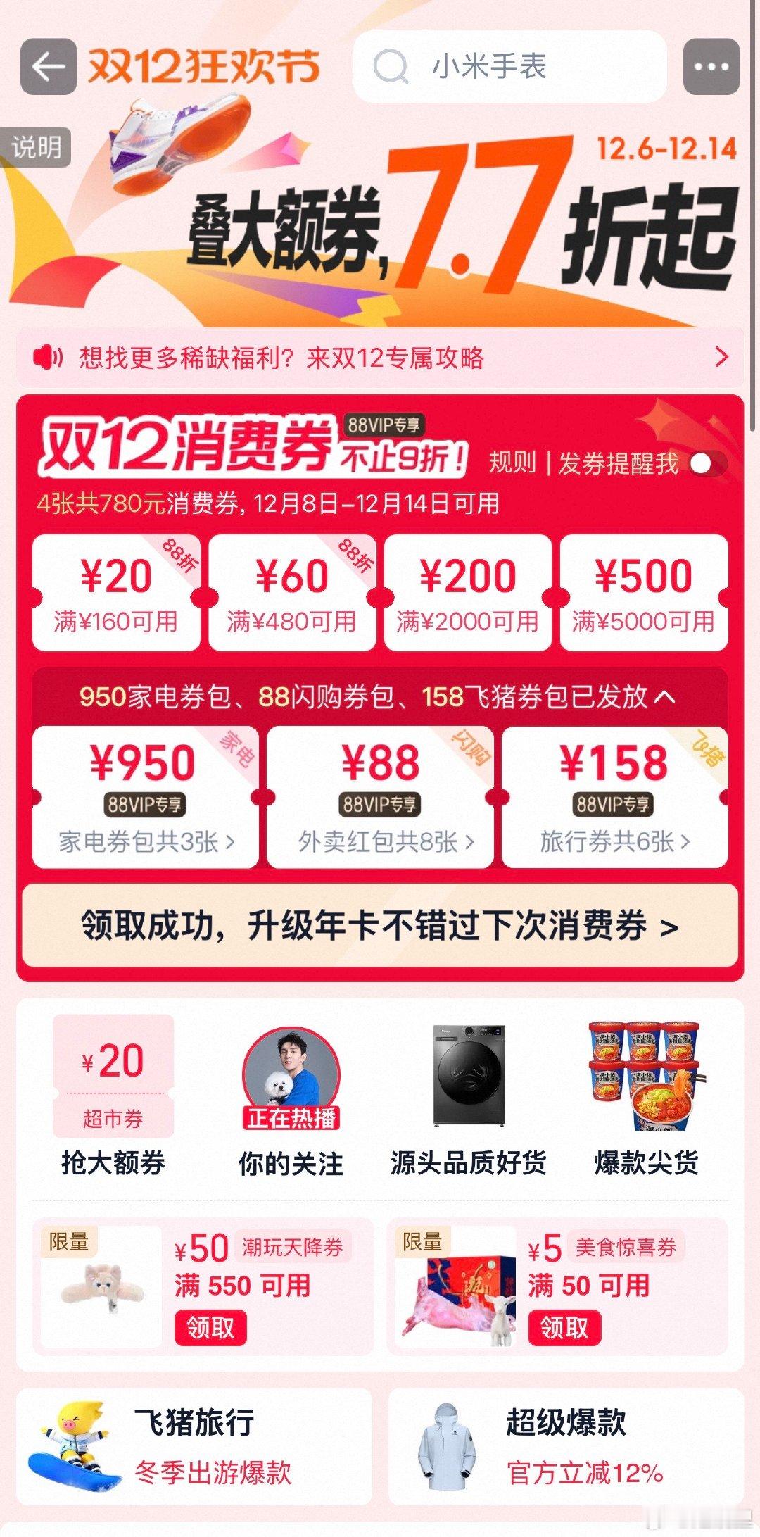 谁懂啊!刷淘宝刷到双12扫货价直接惊掉下巴!大牌保暖羽绒2.9折就能到手,再叠上88VIP专属的780元消费券。这次必须赶紧把购物车清空重加,年底扫货就等这次,薅羊毛的快乐根本停不下来。淘宝双12来了双12上淘宝扫货价带走双12上淘宝更优惠
