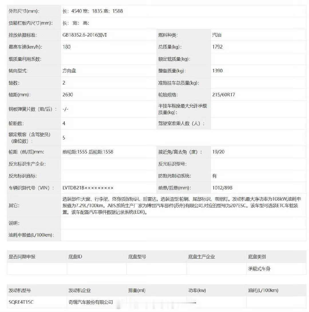 瑞虎5 Pro这造型有点别致设计师是完全沉醉在自己的世界中无法自拔了或者说这辨识度也太高了作为奇瑞品牌旗下全新车型瑞虎5 PRO还真是全新设计语言封闭式前格栅搭配狭长的大灯组以及下方三段式进气口尾部方面,该车整体造型别致贯穿式尾灯组以及尺寸颇大的扰流板适当提升车辆的视觉层次感尺寸方面,长宽高分别为4540/1835/1588mm,轴距为2630mm动力方面,该车采用1.5T发动机,最大功率为115千瓦这造型大家觉得怎么样汽场全开奇瑞