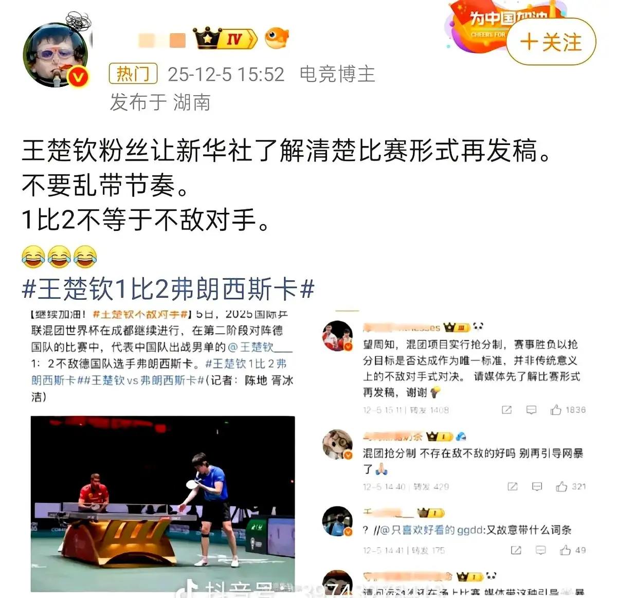 王楚钦1比2不敌弗兰西斯卡,新华社如实报道,可是粉丝急眼了,怒喷新华社说1比2不等于输球! 他们的意思是,这是团体赛,所以王楚钦1比2弗兰西斯卡是事实,但是比赛没输,比赛还在继续,怎么能说王楚钦输球了呢。 好家伙,这样的暴论,跟银牌比金牌重要是一个思路。 其实大家不要反驳这些脑残粉,因为王楚钦胜率还是很高的,下次他比赛赢了的时候,你们也说,王楚钦没赢,2比1不等于赢球。 一场比赛打完,赢得没赢,输得不输,那么这比赛还有什么意义?这就是自欺欺人吗? 王楚钦大满贯 王楚钦巴黎冲金 王楚钦金句 王楚钦年度总结 变脸王楚钦 王楚钦身高 王楚钦采访事故 王楚钦拒签 乒乓王楚钦 国球乒乓王楚钦 赛场硬核王楚钦 王楚钦荣耀夺冠 大满贯王楚钦 王楚钦巴黎男单 王楚钦演技