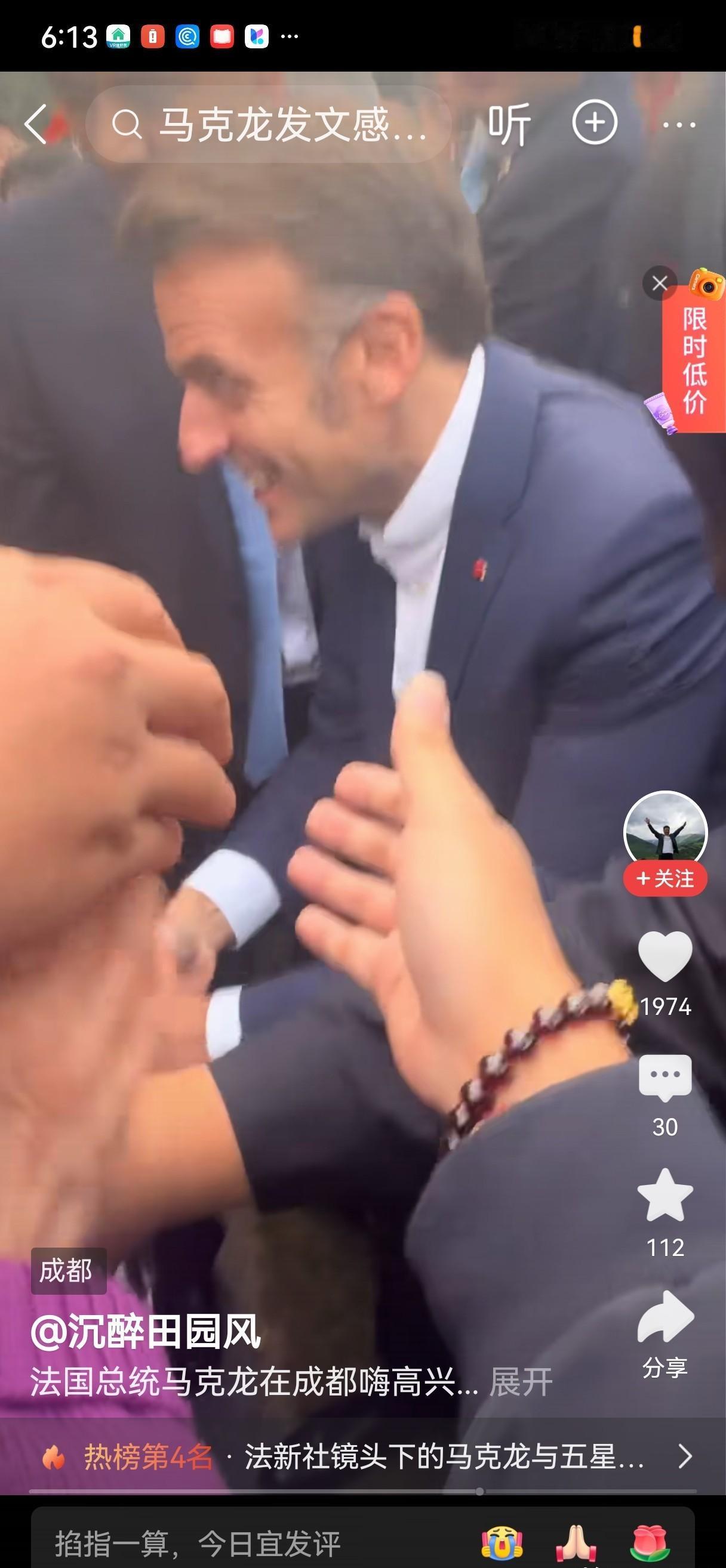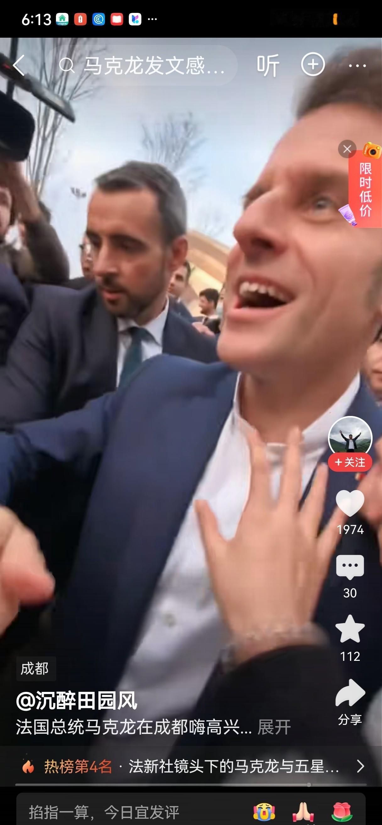 马克龙遇学生狂欢,保镖冲突现分歧,中方出手化解矛盾。 最近法国总统马克龙访华时去四川大学,学生们看到他特别热情,挤上去握手拍照。马克龙一边笑着配合,后面的法国保镖急得脸通红,不停地比划手势。中国保镖则站在边上没动,看着笑了几下。 突然有法国保镖和学生起了争执,网上流传的视频显示,他们好像推搡了学生。这边中国保镖马上走过去,跟对方理论了几句。没几分钟双方分开,马克龙继续往前走,现场又恢复平静。 事后有人说这是文化差异,也有人讨论安保规范。这事就在这几秒视频里,具体情况谁也没法详细查证。马克龙后来去了其他地方,这事也就没再提了。