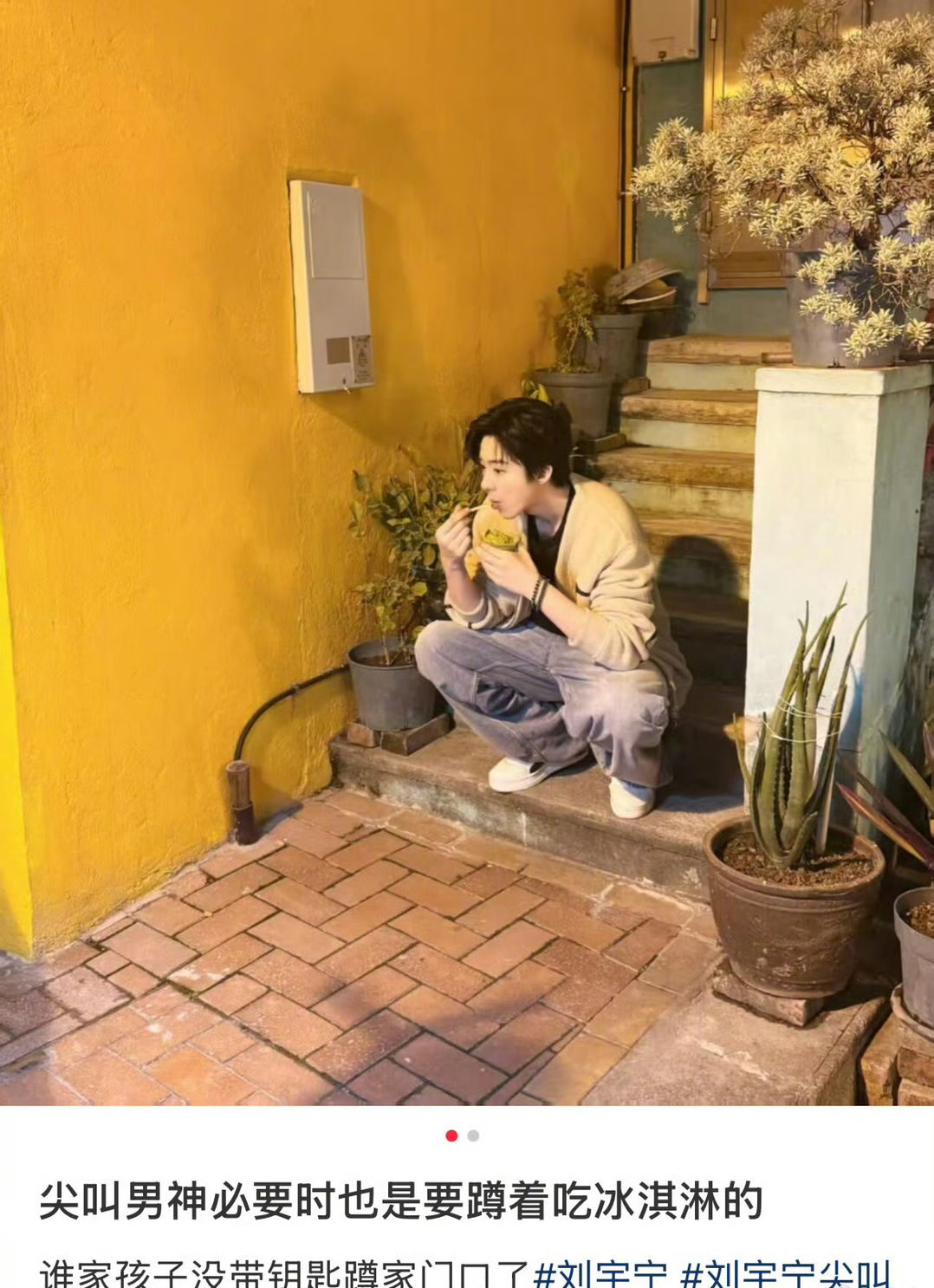 刘宇宁蹲地上吃冰淇淋,真的很像出门忘记带钥匙蹲家门口等