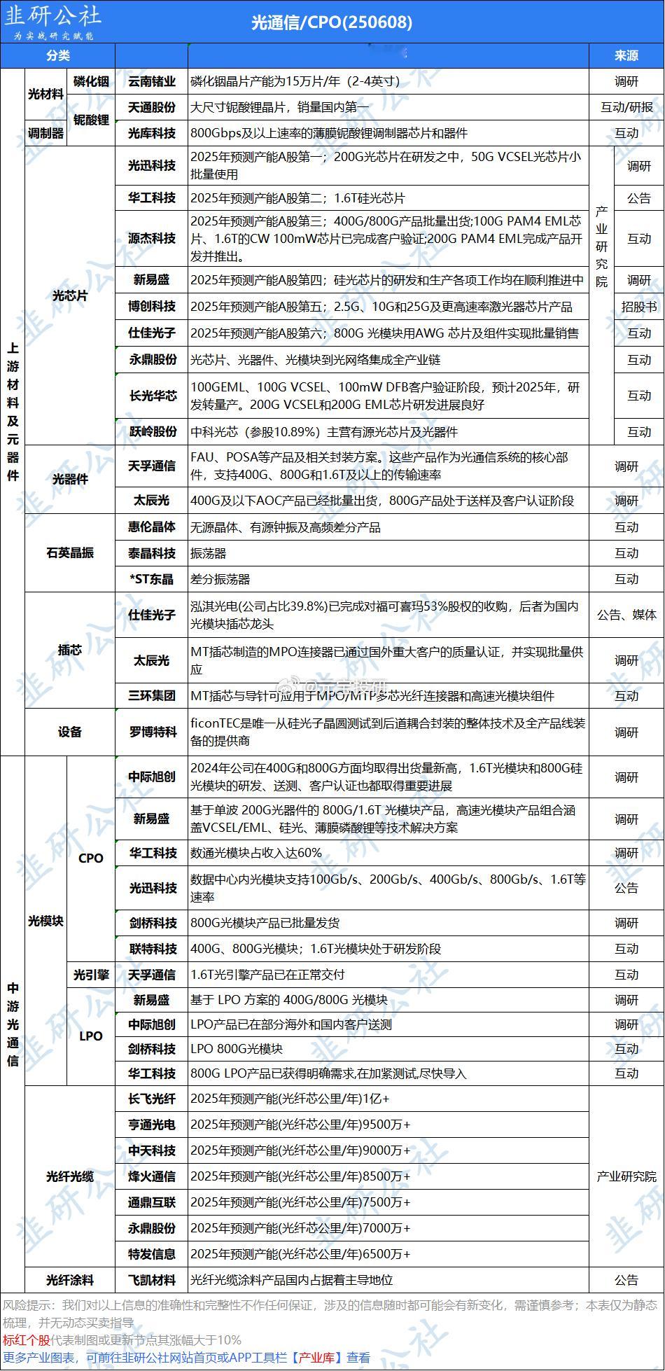 CPO领域最核心的10家公司情况:第1家新易盛,主要产品有800G/1.6T
