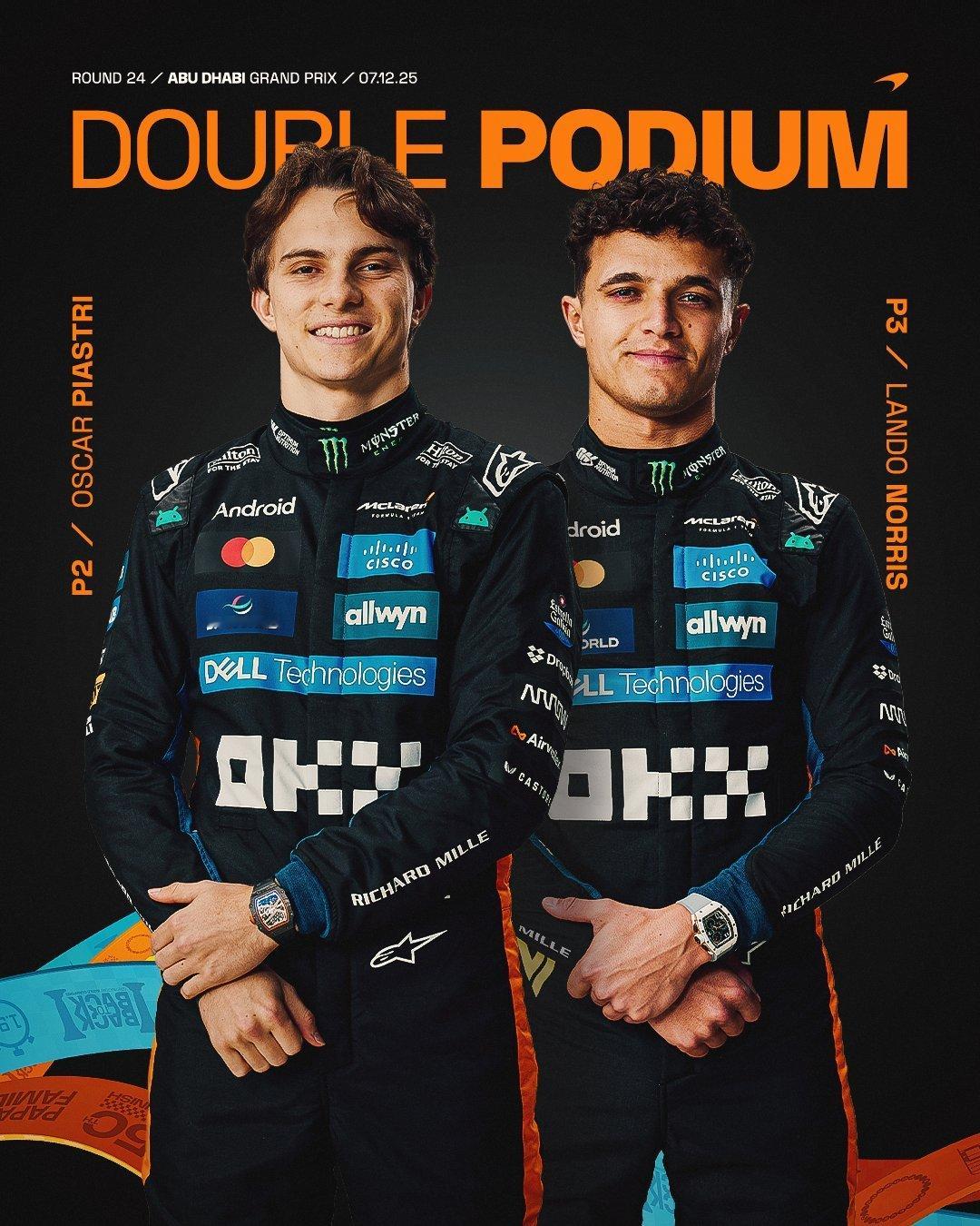 兰多·诺里斯成为英国的第11位F1世界冠军🏆🇬🇧👏诺里斯凭借阿布扎比站季军,以两分优势力克维斯塔潘,夺得2025年F1世界冠军。这位26岁的车手在自己征战F1的第七个赛季终登顶峰,也成为自2008年汉密尔顿以来,首位夺得世界冠军的迈凯伦车手。维斯塔潘在比赛中一路领跑夺冠,这是他本赛季第八场胜利(全场最多)。但他并未采取任何特殊战术干扰诺里斯。另一位争冠热门、诺里斯的迈凯伦队友皮亚斯特里则位居二人之间,登上领奖台亚军位置。三位冠军争夺者在发车圈均未卷入麻烦。发车后维斯塔潘迅速向左阻挡诺里斯,随后皮亚斯特里尽管使用较硬胎,仍在外线第9弯超越队友。诺里斯对此并不介意,乐于让出位置以避免发生碰撞。此后三人拉开距离,彼此间隔数秒。诺里斯反而意外地受到了勒克莱尔的压力。在争冠对手的头号劲敌拉塞尔发车受挫后,勒克莱尔扮演了搅局者的角色。勒克莱尔多次进入诺里斯的DRS区域,但始终未能真正威胁到超车。两人在第17圈(共58圈)同时进站,成功抵御了拉塞尔梅赛德斯车队可能的undercut战术,出站后位置保持不变。进站后,诺里斯和勒克莱尔被夹在一群使用旧胎激战的赛车中间,但对冠军领跑者来说,穿越这些慢车并未遇到太大困难。他在第5弯强势超越安东内利,在驶向第9弯的路段轻松超过塞恩斯,随后在下一次通过7号弯直道时一举超越斯托尔和劳森。劳森未做防守,显然是为了在接下来的直道上利用诺里斯的DRS,这使得诺里斯的一次过两人更加轻松。这引发了第一个紧张时刻,劳森在进入第9弯时反击诺里斯,但最终还是保持在后方。第二个、也是更令人紧张的时刻发生在诺里斯追上显然受命阻挡他的角田裕毅时,在7号弯路段的超车中四轮全部驶离赛道。然而,此前角田裕毅左右大幅度摆动赛车防守,最终被判定动作过度,因防守变线过多被处以5秒罚时,而诺里斯则因其潜在违规行为被免责。随着诺里斯的季军位置已相对稳固,争冠形势不再受冠军争夺战的影响——而且这本来也算不上是一场争夺。维斯塔潘和皮亚斯特里均采用一停策略,后者将硬胎起步的首 stint 延长至41圈。在此期间,维斯塔潘换上更新的轮胎追回并超越了他。皮亚斯特里换上新中性胎后,落后差距仍超过20秒,未能真正缩小这一差距。他最终落后12.6秒完赛,诺里斯再落后其4秒冲线,但在最终积分榜上,诺里斯仍关键性地以两分优势领先维斯塔潘。勒克莱尔在第二和第三 stint 中均未能维持对诺里斯领奖台位置的挑战,最终以孤独的第五名结束了法拉利令人失望的赛季,领先拉塞尔巨大优势,而后者在梅赛德斯赛车中似乎完全缺乏速度。阿隆索在阿斯顿·马丁赛车中进行了一场防守战,获得第六名。但他的第六名并不足以让阿斯顿·马丁在车队积分榜上超越小红牛,尽管后者表现极其缺乏竞争力。斯托尔因防守时多次变线被 late penalty 从第九名跌至第11名。奥康抵挡住了使用更新、更软轮胎的法拉利车手汉密尔顿的 late charge,获得第七名。奥康的队友比尔曼获得第九名,哈斯车队因此在车队积分榜上巩固了第八名,超越了索伯车队。索伯车队的博托莱托获得第十名,为其在成为奥迪车队前的最后一场比赛中拿下一个积分。角田裕毅在受罚后,最终默默无闻地获得第13名,仅勉强领先另一辆挣扎的顶级车队赛车——新秀安东内利驾驶的梅赛德斯。诺里斯加冕F1世界冠军老纪侃车维斯塔潘夺F1阿布扎比站冠军2025f1阿布扎比大奖赛
