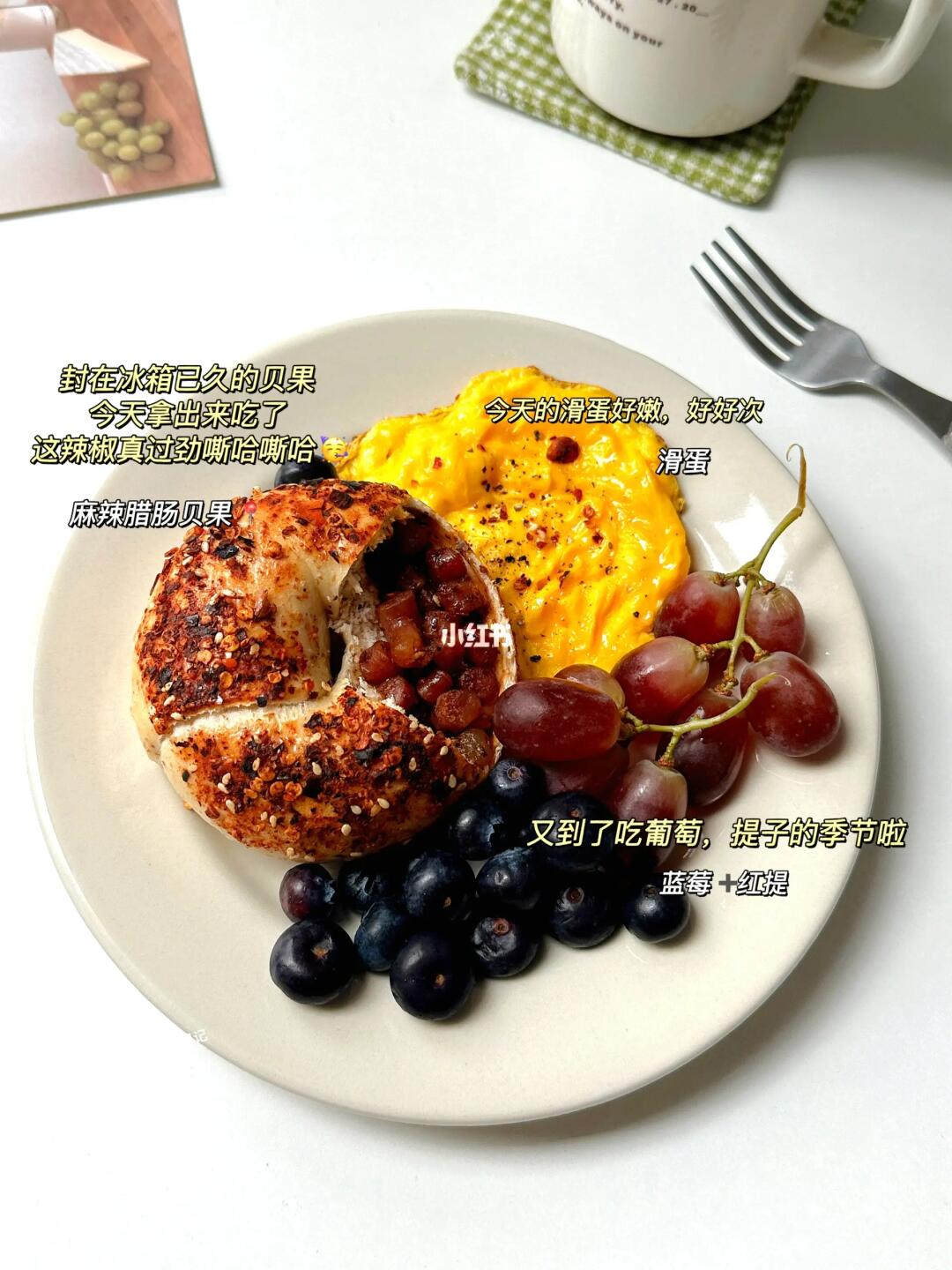 ▪️初始体重:120斤 ▪️已➖28斤 ▪️今日体重:🈚 - 🥣早:麻辣腊肠贝果 | 豆浆 | 红提 | 蓝莓 | 滑蛋 🥣午 :炒油菜 | 豌豆炒肉沫 | 凉拌香椿 🥣晚 :鸡胸肉炒胡萝卜 🥣加餐:司康一块 🏋️运动:🈚 💧喝水2000ml➕ - 📝冰箱最后一个麻辣贝果啦,现在对甜的面包不是很感兴趣了,就想吃有味的面包🍞或者自己加料的吃法!还对喝花茶感兴趣😁买了一些喝着! 楼下买的司康,味道还不错,就是好小一个💰不友好~🥳 好好吃饭~多吃蔬菜,多喝水!