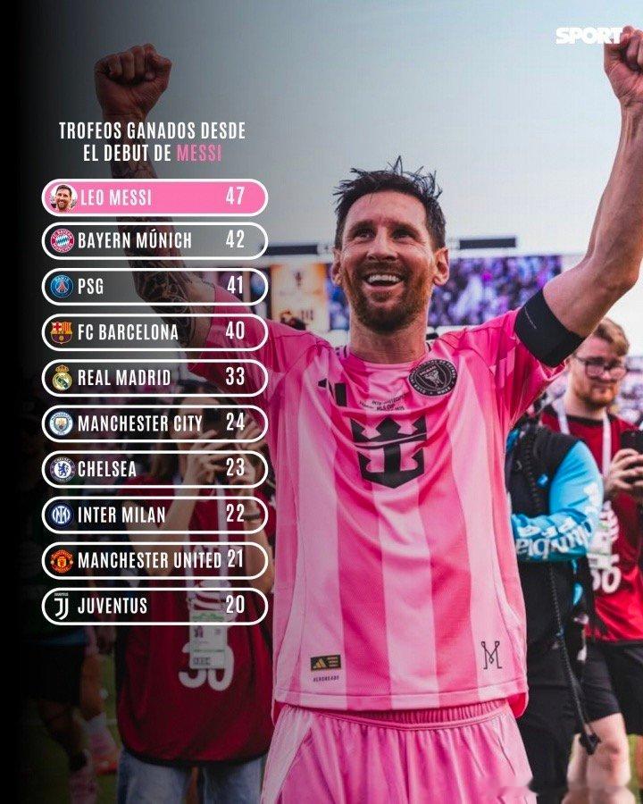 【梅西生涯冠军数超同期一众豪门】12月7日,美职联总决赛,迈阿密国际以3-1的比分战胜温哥华白浪夺得冠军,38岁阿根廷球星梅西夺得职业生涯第47冠。据每日体育报统计,梅西自首秀以来的奖杯数甚至超越了同期的一众欧洲豪门。(直播吧)自梅西首秀以来各队夺得的冠军数↓梅西:47座拜仁:42座巴黎:41座巴萨:40座皇马:33座曼城:24座切尔西:23座国米:22座曼联:21座尤文:20座