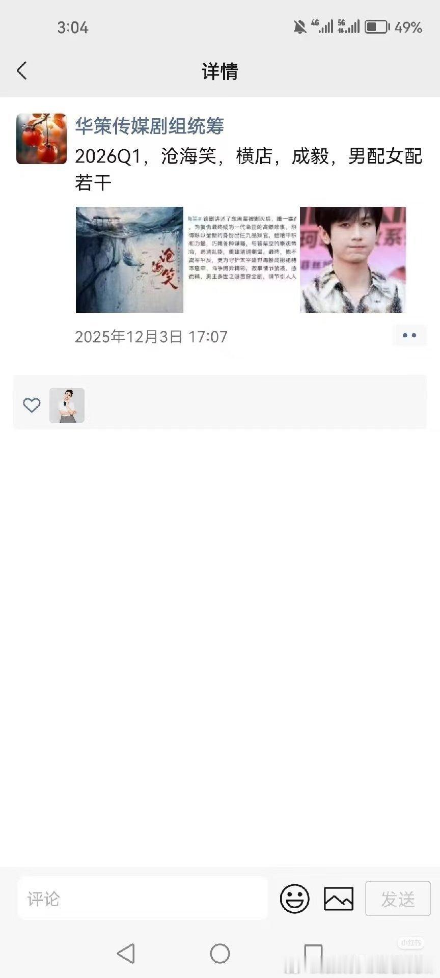 成毅《沧海笑》明年Q1,这是欢瑞➕华策?男二田雷?