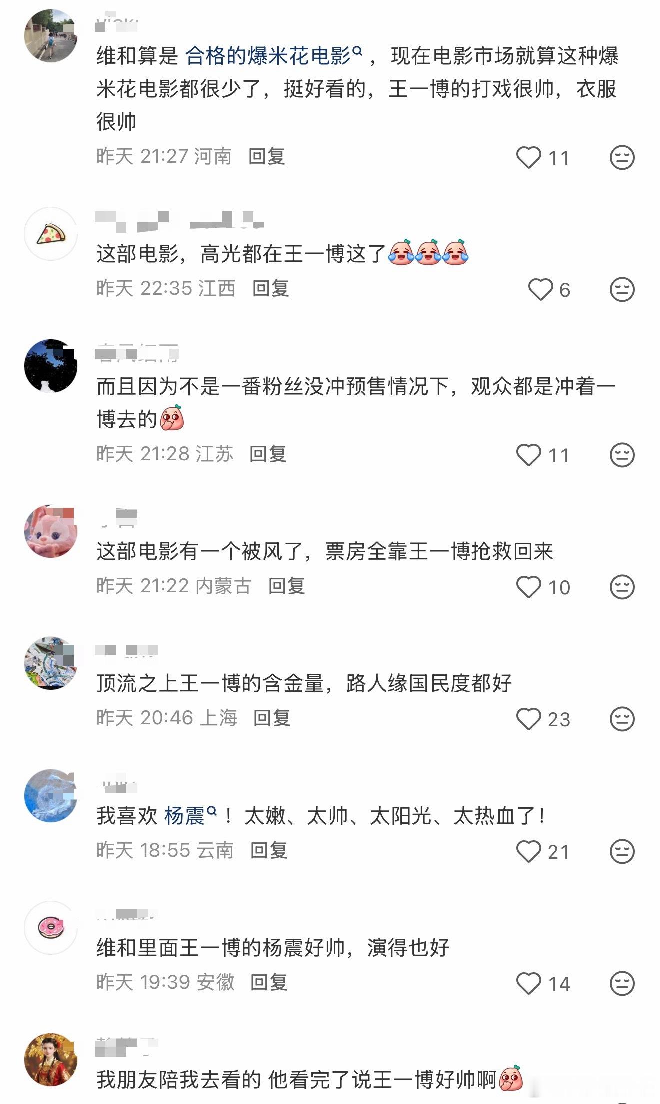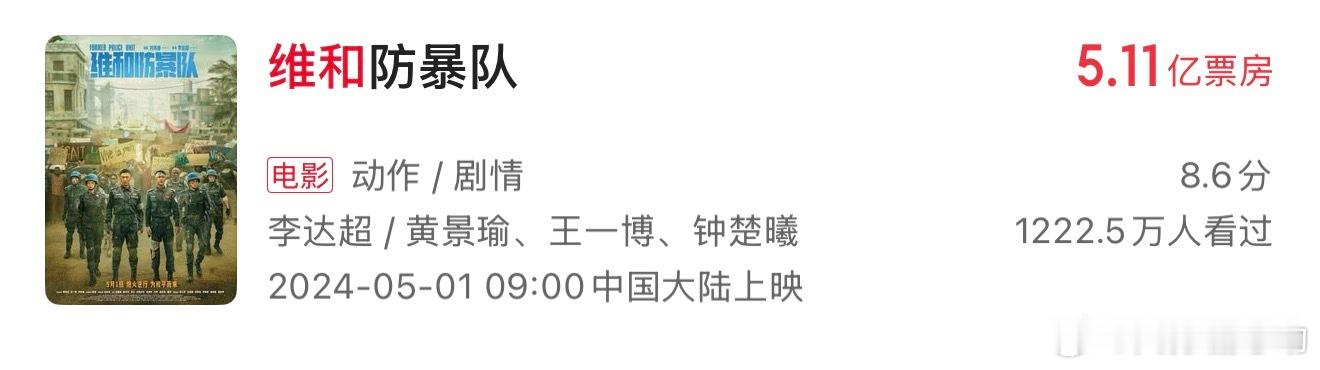 维和防暴队这部电影挺坎坷的,有人被剪戏份然后补拍重剪,都觉得可能上不了了。就这样王一博家没号召专门买预售也没填c,首日1.3亿,前期没倒挂过,最终票房也有5亿多。这才是爆剧后续红利