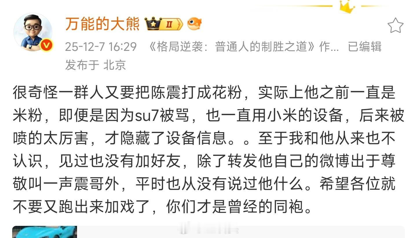 我说了吧,熊老师这个人撕破脸皮很快的,没出事之前都是哥们儿,出了事那就不好意思了,陈震也是,关海涛也是。还是那句话,少招惹熊老师。