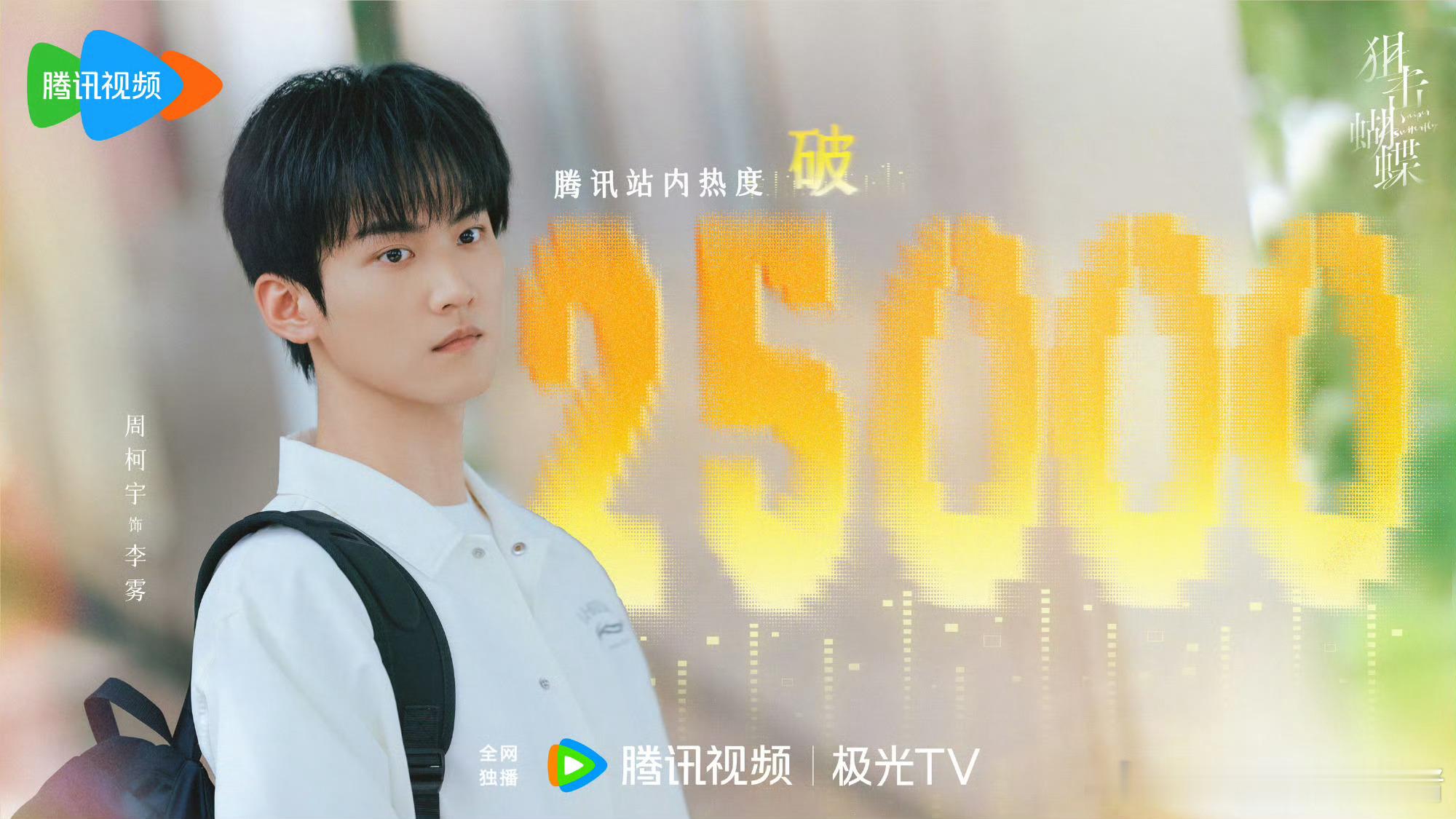周柯宇新剧热度破 25000, 并且还是首部男主剧四天就破了,个人角色热度破1000w,明日还有剧宣🥰🥰