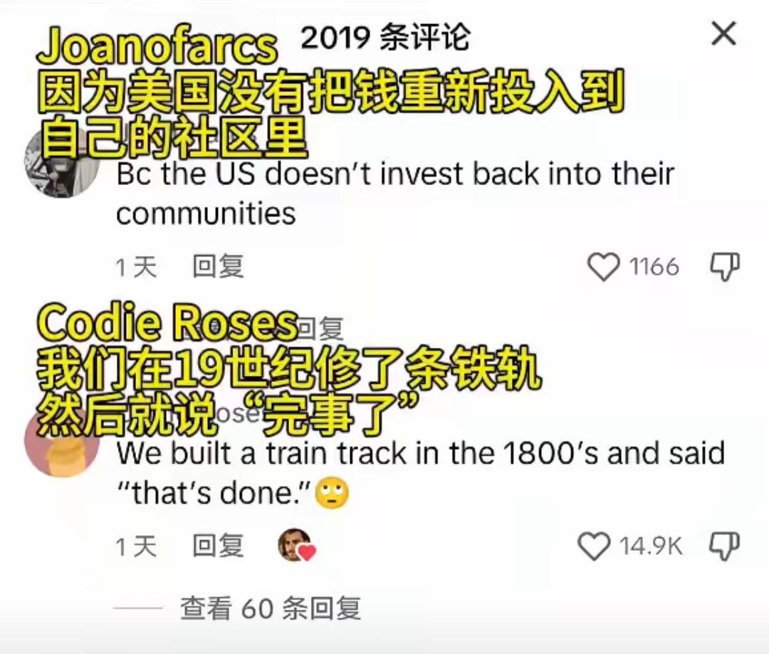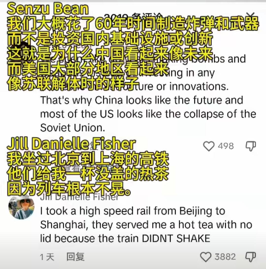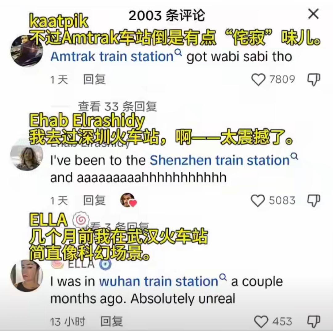 美国网友讨论中国高铁,9条评论,就斩获4万条赞,全文狂揽13万条赞。 美国网友对比自家AMtrak车站和中国高铁科幻场景,简直就是sabi味儿。 “我坐过北京到上海的高铁,他们给我一杯没盖的热茶。因为列车根本不晃。” “我们在19世纪修了条铁轨,然后就说完事了。” 芝加哥坐火车,火车又慢又晃荡,座椅上的弹簧都硌屁股。这可能是对美国火车的最全面的评价。