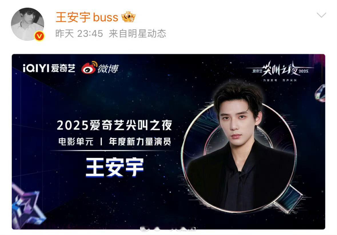 王安宇有效出席尖叫之夜,微指第五,两套超季,还拿了奖。老王哥牛比
