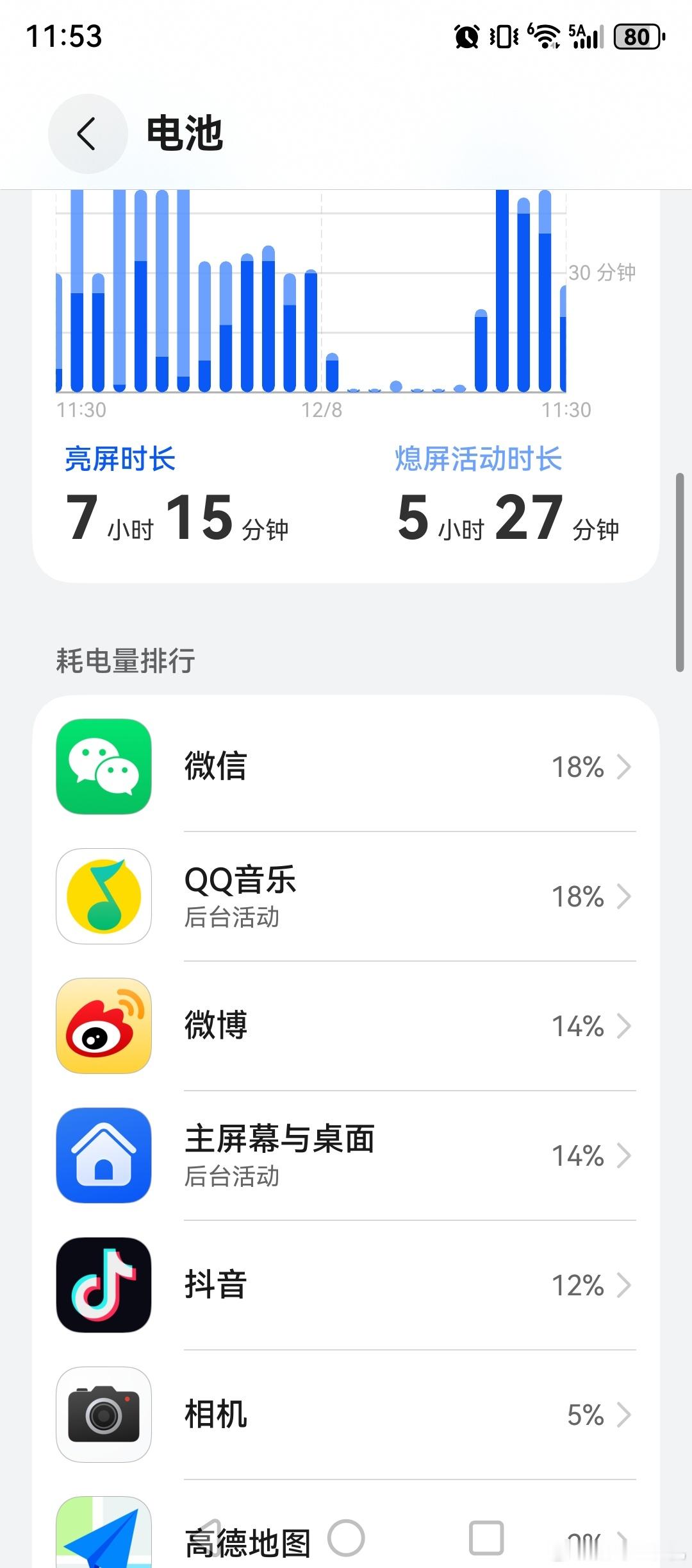 手机里什么APP最耗电 一般来说是系统,但这也要根据挂后台的App有关系,像我们重载使用的微信,导航,音乐软件等长时间用肯定都耗电,你们看看自己的电池用量啥最耗电