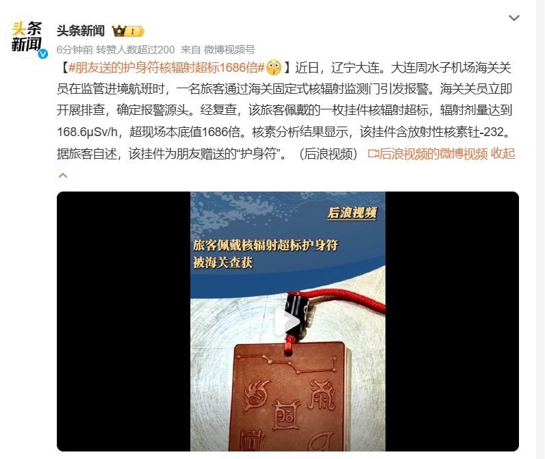 朋友送的护身符核辐射超标1686倍 要看这个朋友是不是懂得核辐射标准和危害,是有意害人还是无意的。对绝大多数普通人来说,不会拿到一个东西就去检测辐射量,尤其是对一些护身符不会检测后再佩戴或者送人。这就要求从源头上对各种物品尤其是护身符把好关,不能让不合格的物品流入市场。