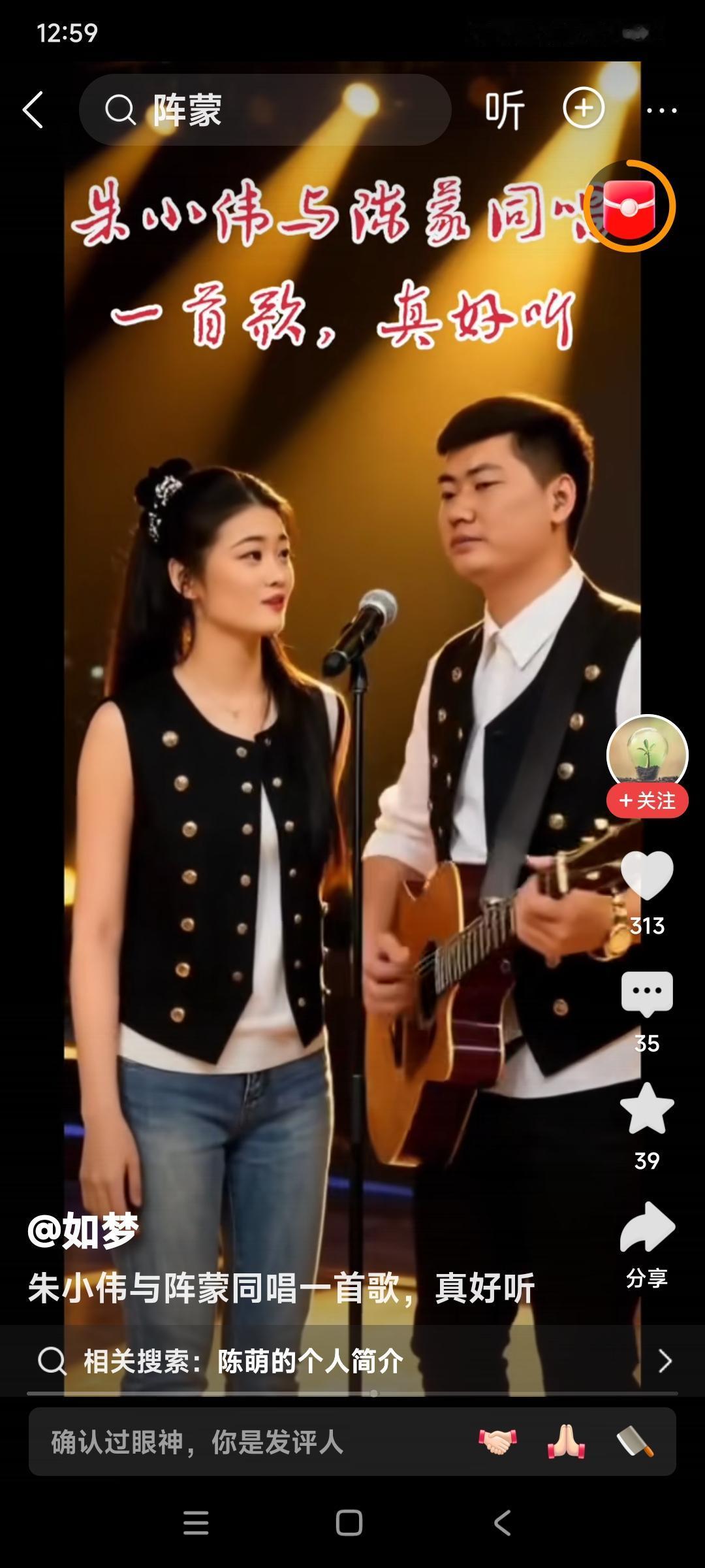 朱小伟拍这样的视频,还挺招人喜欢看。 小伟弹琴夫妻俩唱起了歌。 人品好,心地善良的一对小夫妻。 小两口儿相貌好看,招人儿喜欢。 真是天生一对,地造一双的好夫妻。 为这幸福的小夫妻俩点赞。