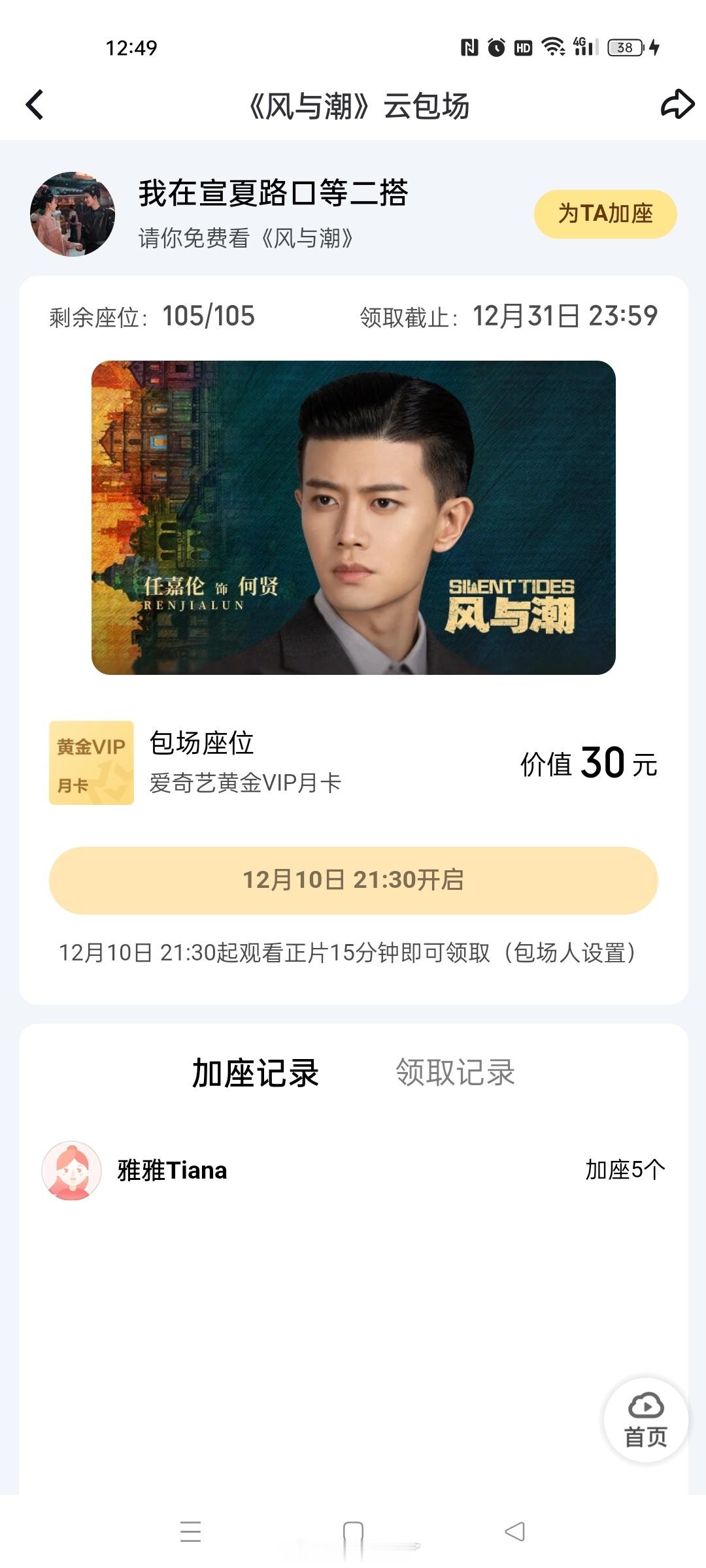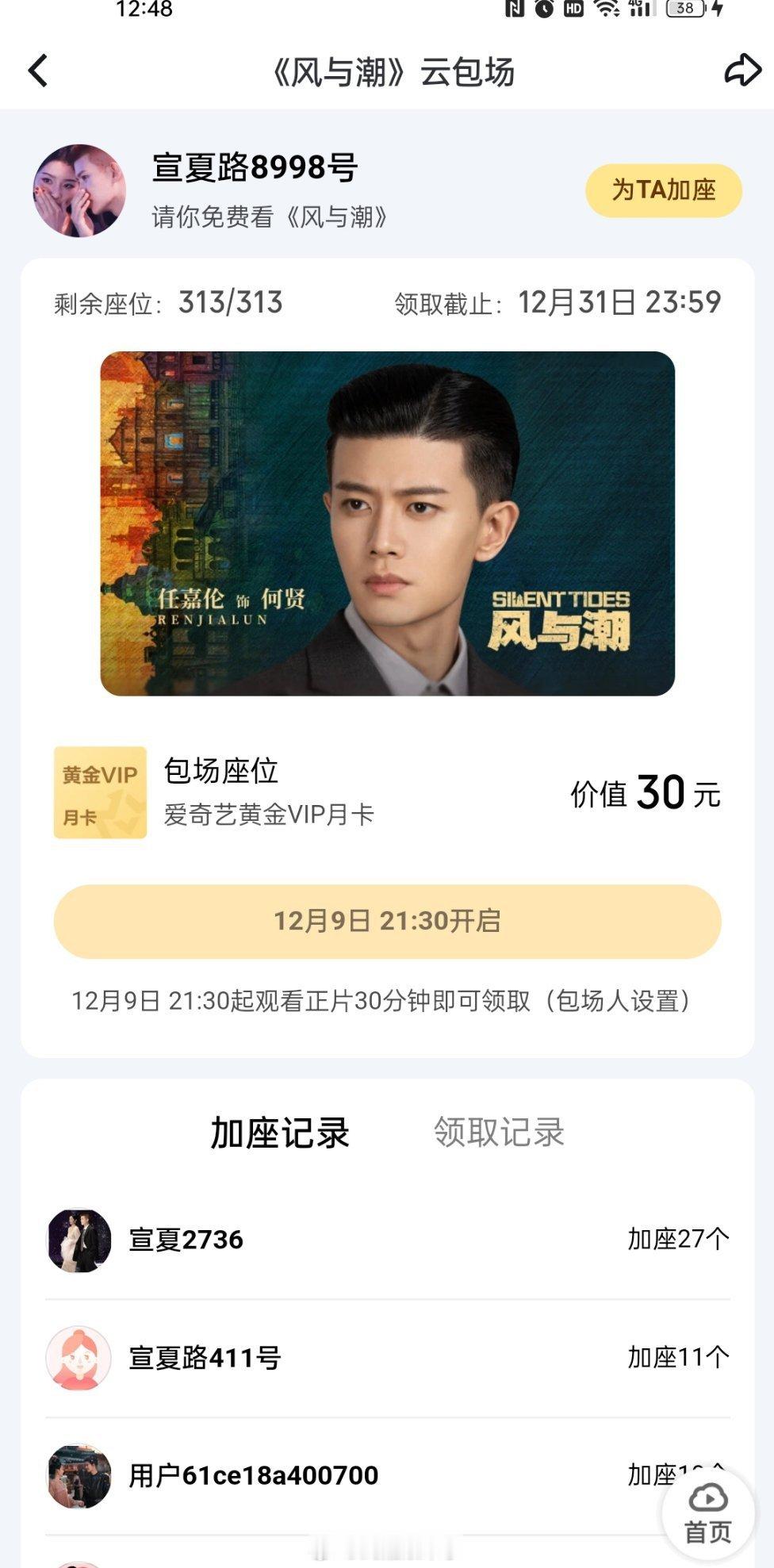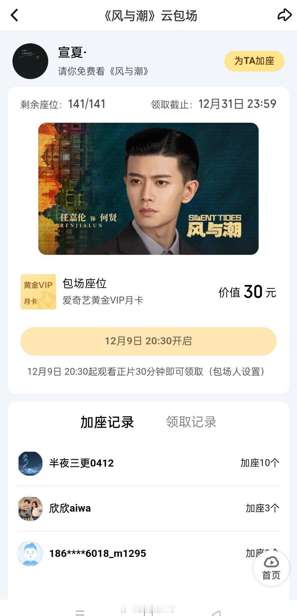 《无忧渡》剧粉都来给任嘉伦《风与潮》云包场了
