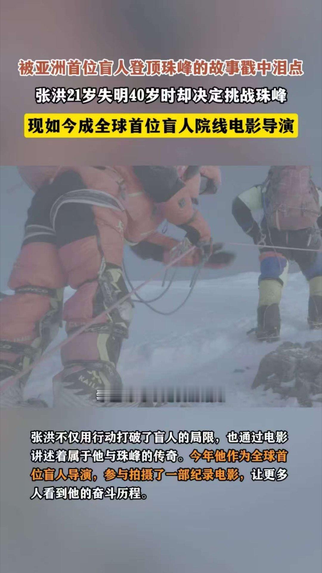 亚洲首位盲人登顶珠峰的故事太燃了21岁失明的张洪,以6年负重爬楼、缺氧模拟的极致训练,冲破8700米暴风雪与悬崖危机,登顶珠峰成亚洲第一人,用坚持定义无畏。珠峰登顶者成全球首位盲人电影导演