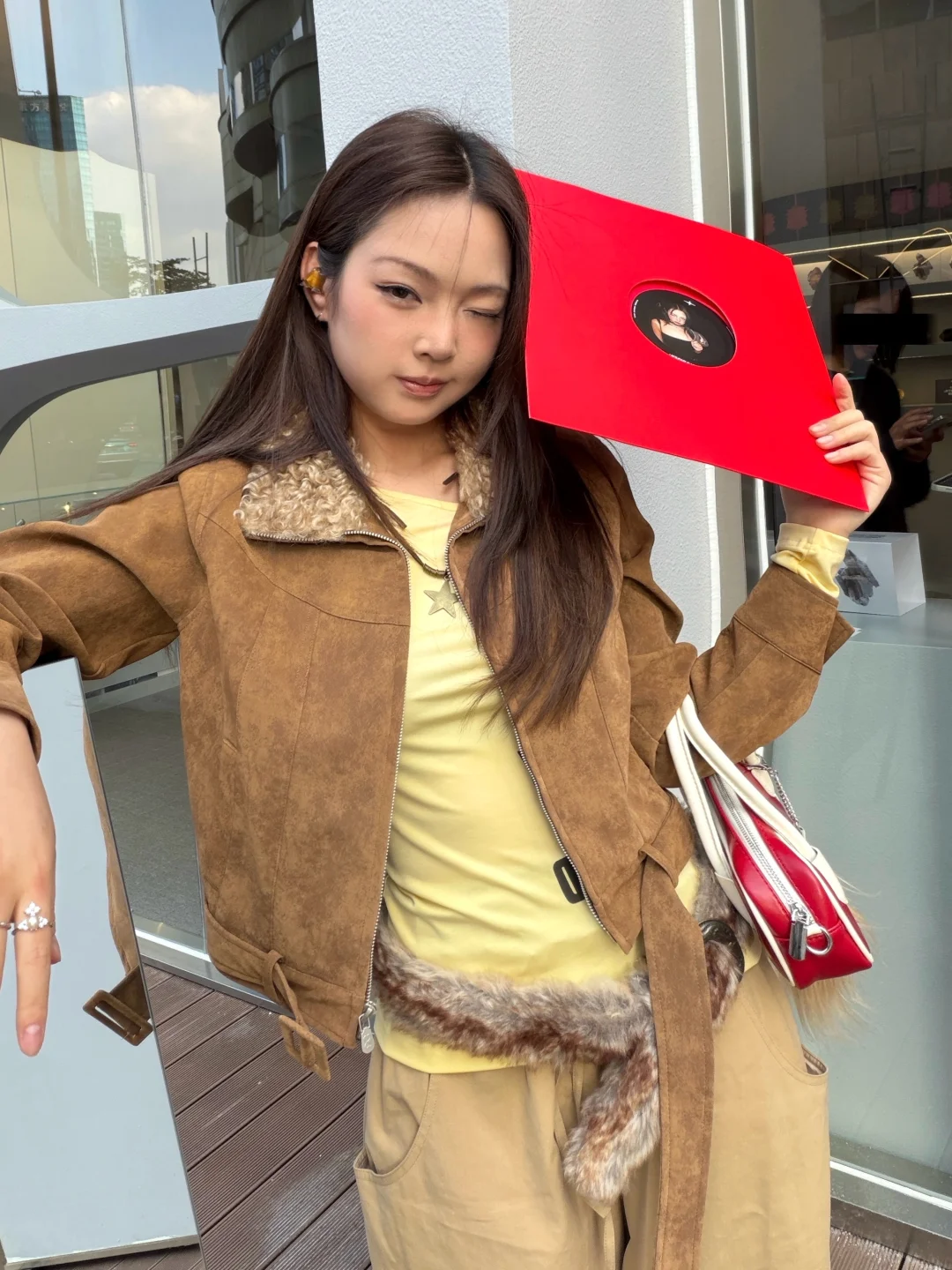 被选中来当一日巨星啦! 逛店的风格依旧是我最爱的黄色系搭配 和最近很爱的虎眼石耳机! 兼顾听歌🎧和全身搭配点睛~ 另外提一嘴,虎眼石也是“执行力之石” 也同样是我对自己的一些期许 琥珀感跟现在这个天气也绝佳适配 搭配完成度超高的一份属于Ai时代的电子宝石 还收获了意外之喜,属于我的定制照片红黑配色唱片