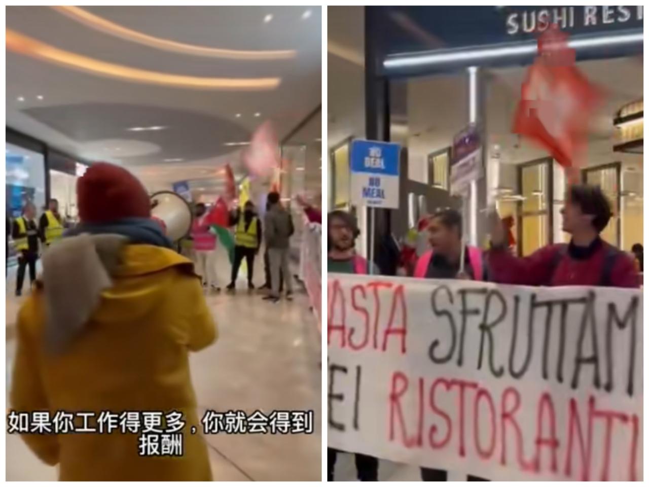 看看,这才是“正经”的罢工! 意大利一家餐厅工人集体罢工维权,拉横幅,喊喇叭,堵