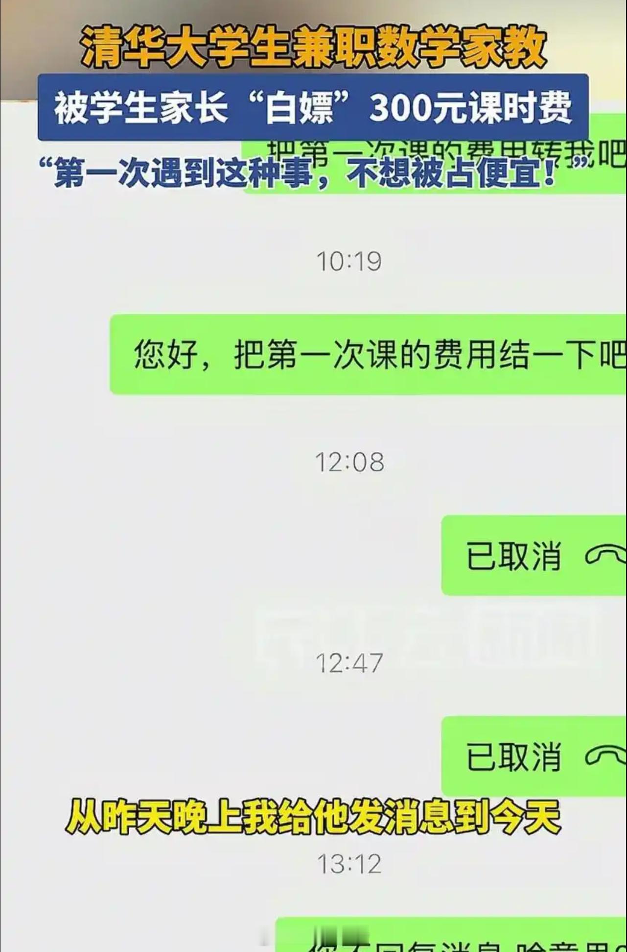 退学北大考上清华小伙被白嫖家教费 尊重他人劳动成果与契约精神是一个人应有的基本准则。大学生凭知识赚教辅费与农民工打工赚钱并没什么太大区别,合法收入都应受到保护这位同学并不是小题大作,要回自己的收入天经地义。
